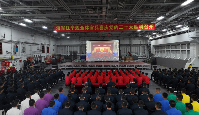 10月16日,海军航空大学某基地官兵收看中国共产党第二十次全国代表大会开幕会。新华社发(肖亮亮 摄)