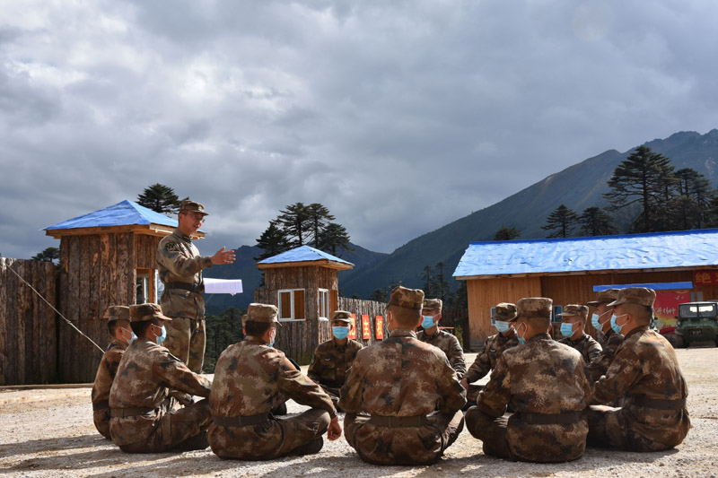 10月17日,西藏林芝军分区“墨脱戍边模范营”组织官兵学习党的二十大报告。新华社发(游毅 摄)
