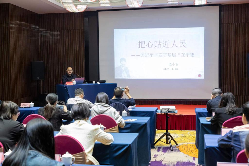 18日晚,马克思主义学院负责人主持开班仪式,介绍本次培训的目的及主要内容。听取了中共宁德市委党校哲学教研室副主任陈小韦老师作的《把心贴近人民——习近平“四下基层”在宁德》的专题讲座。