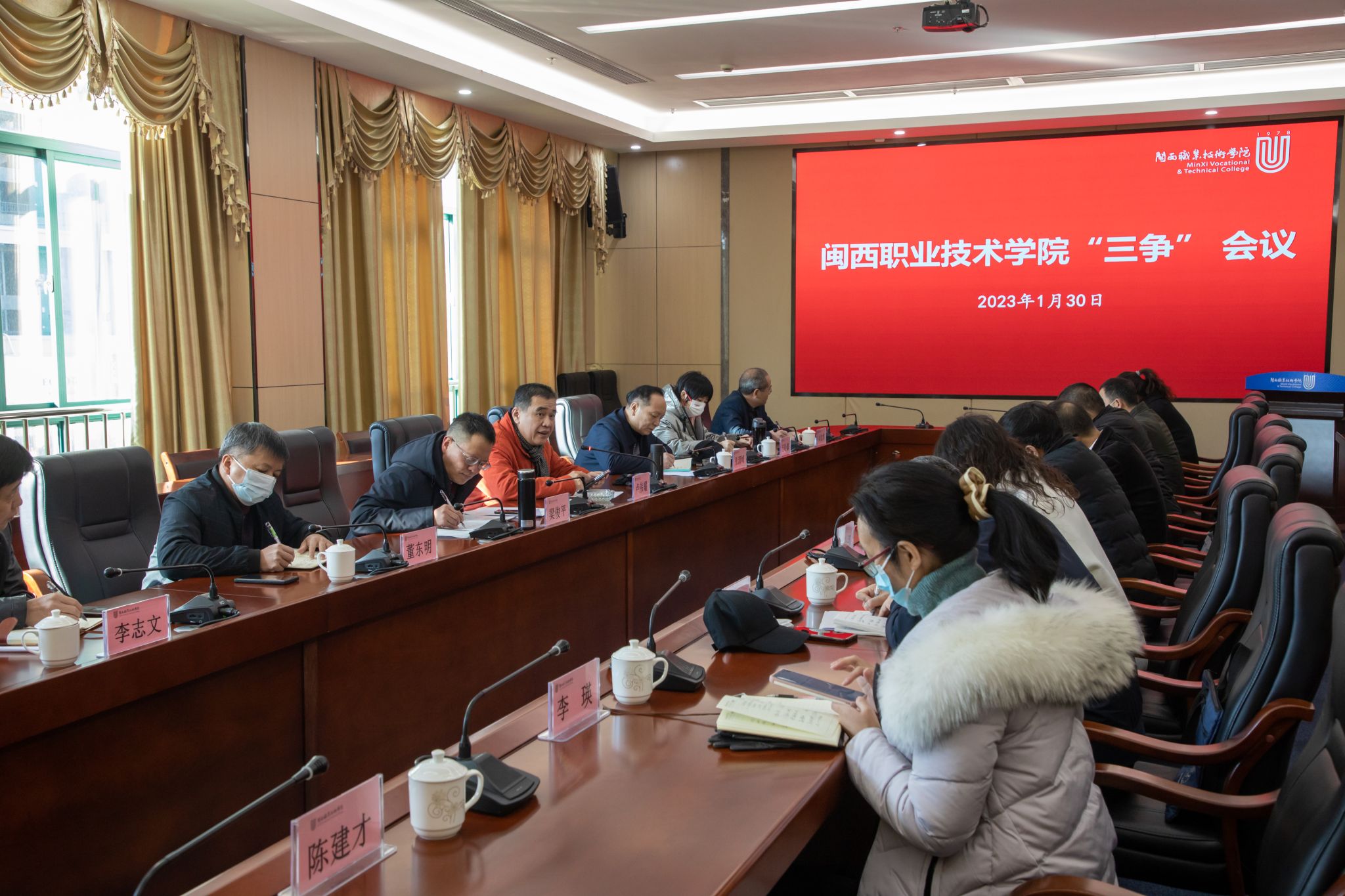1月30日上午,我校在岩声楼会议室召开落实省委“深学争优、敢为争先、实干争效”行动会议,研究2023年攻坚项目重点工作,党委书记卢伟耀,校长梁俊平,各二级学院书记、院长,组人处、学工处、教务处、教工处等部门负责人参加会议。会议由卢伟耀书记主持。