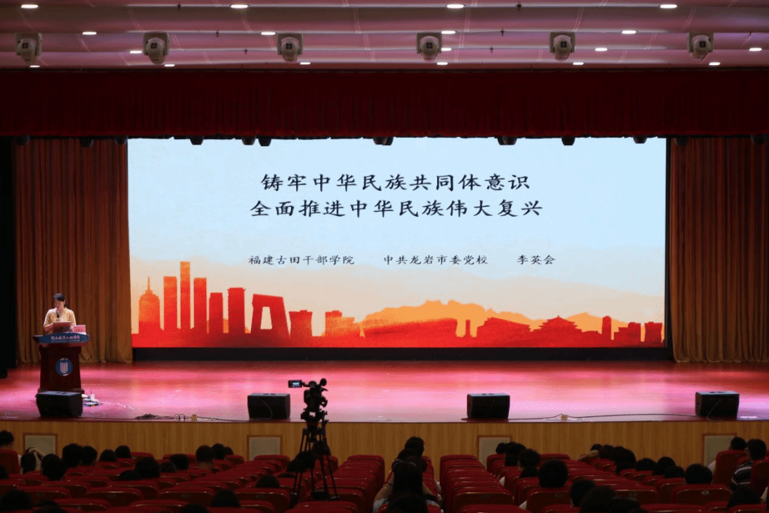 为了贯彻落实党的二十大精神,推进“铸牢中华民族共同体意识”教育,2023年5月28日上午,我校邀请福建古田干部学院、中共龙岩市委党校李英会老师,在大匠堂开设了一堂《铸牢中华民族共同体意识,全面推进中华民族伟大复兴》青马专题讲座。校团委相关老师和512名青马培训学员参加。