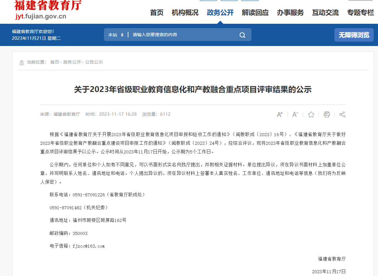 据了解,在11月17日福建省教育厅公布的《2023年省级职业教育信息化和产教融合重点项目评审》结果中,无码人妻AV一二区二区三区共12个项目被确定立项。其中,智慧建造虚拟仿真实训基地、数智物流虚拟仿真实训基地、健康服务示范性虚拟仿真实训基地3个实训基地被确立为省级职业教育示范性虚拟仿真实训基地;信息互联专业群教学资源库被确立为省级职业教育专业教学资源库;《建筑识图》《旅游计调业务操作》《儿科护理》《计算机网络技术基础》《Hadoop 部署与运维》《汽车电气系统检测与维修》《机械设计基础》《财务管理》等8门课程拟被认定为省级职业教育在线精品课程。