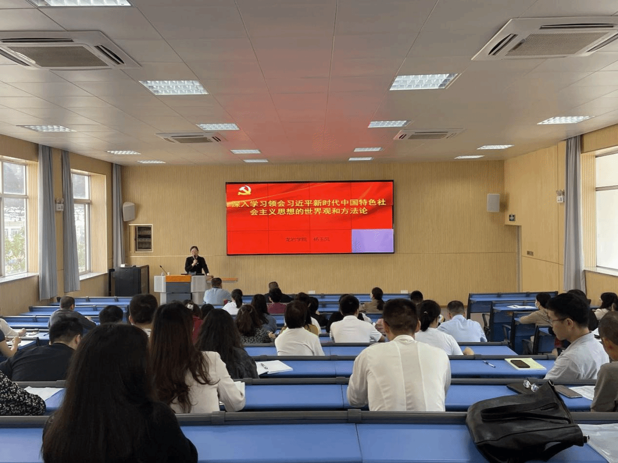 马克思主义学院负责人在总结中指出,杨玉凤教授从习近平新时代中国特色社会主义思想世界观方法论的实践依据、集中体现、丰富发展等三个方面对习近平新时代中国特色社会主义思想世界观和方法论做了阐述,对其科学内涵、核心内容、根本方法做了详细的解读,整个讲座逻辑结构清晰,案例生动详实,语言生动精炼,让我们对习近平新时代中国特色社会主义思想世界观方法论有了更深入更全面的了解。他强调,学校当前正在打造“予生最好学校”的品牌,如何以立德树人为根本,以“学生学习成效”为中心,推进思政课程与课程思政同向同行,从而打造“一院一策”;怎样在思政课教学中做到教学内容有所侧重、详略得当,从而打造有温度的思政课堂;怎样在落实国家、省对思想政治课程教学要求的前提下,推进思政小课堂和社会大课堂有机融合,从而创新思政课程实施路径和教学方法,这些都是“予生最好学校”对我们思政队伍提出的命题,而要完成好这些命题,就需要我们坚持不懈用习近平新时代中国特色社会主义思想凝心铸魂,将其转化为坚定理想、锤炼党性和指导实践、推动工作的强大力量。