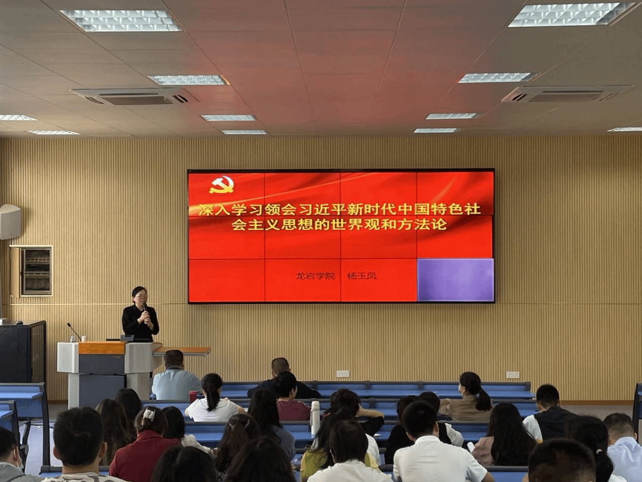 11月6日,马克思主义学院开展“学思想、强党性、重实践、建新功”主题研讨会暨名师工作室校际交流活动,邀请龙岩学院马克思主义学院杨玉凤教授作“深入学习领会习近平新时代中国特色社会主义思想的世界观和方法论”的讲座。本次活动由马克思主义学院名师工作室承办,全校思政课教师、辅导员参加,马克思主义学院负责人主持会议。