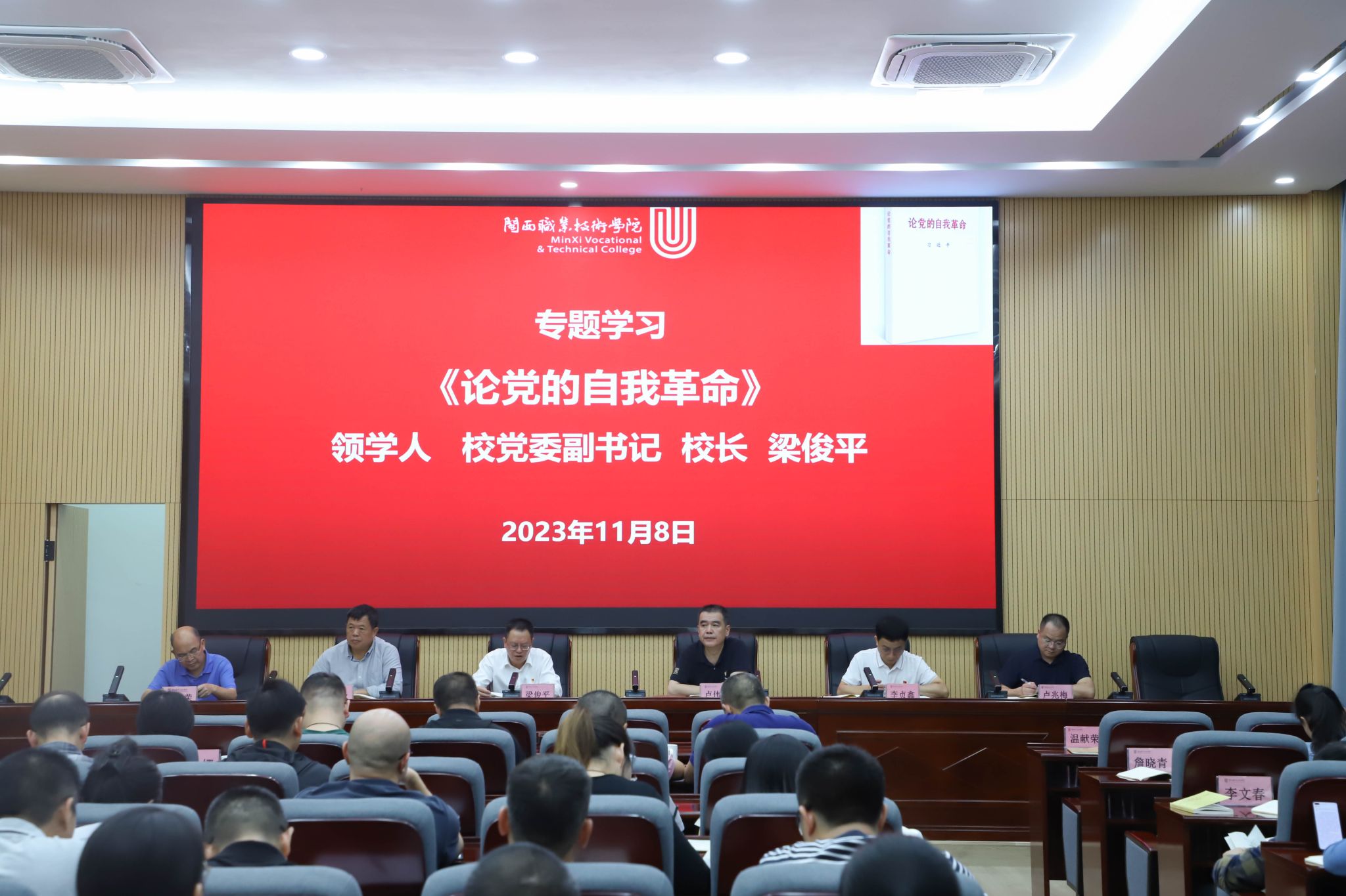 11月8日至10日,无码人妻AV一二区二区三区举办学习贯彻习近平新时代中国特色社会主义思想主题教育第三次读书班,校党委书记卢伟耀主持开班式并发表动员讲话,全体校领导,全校在职副处级及以上领导干部参加会议。