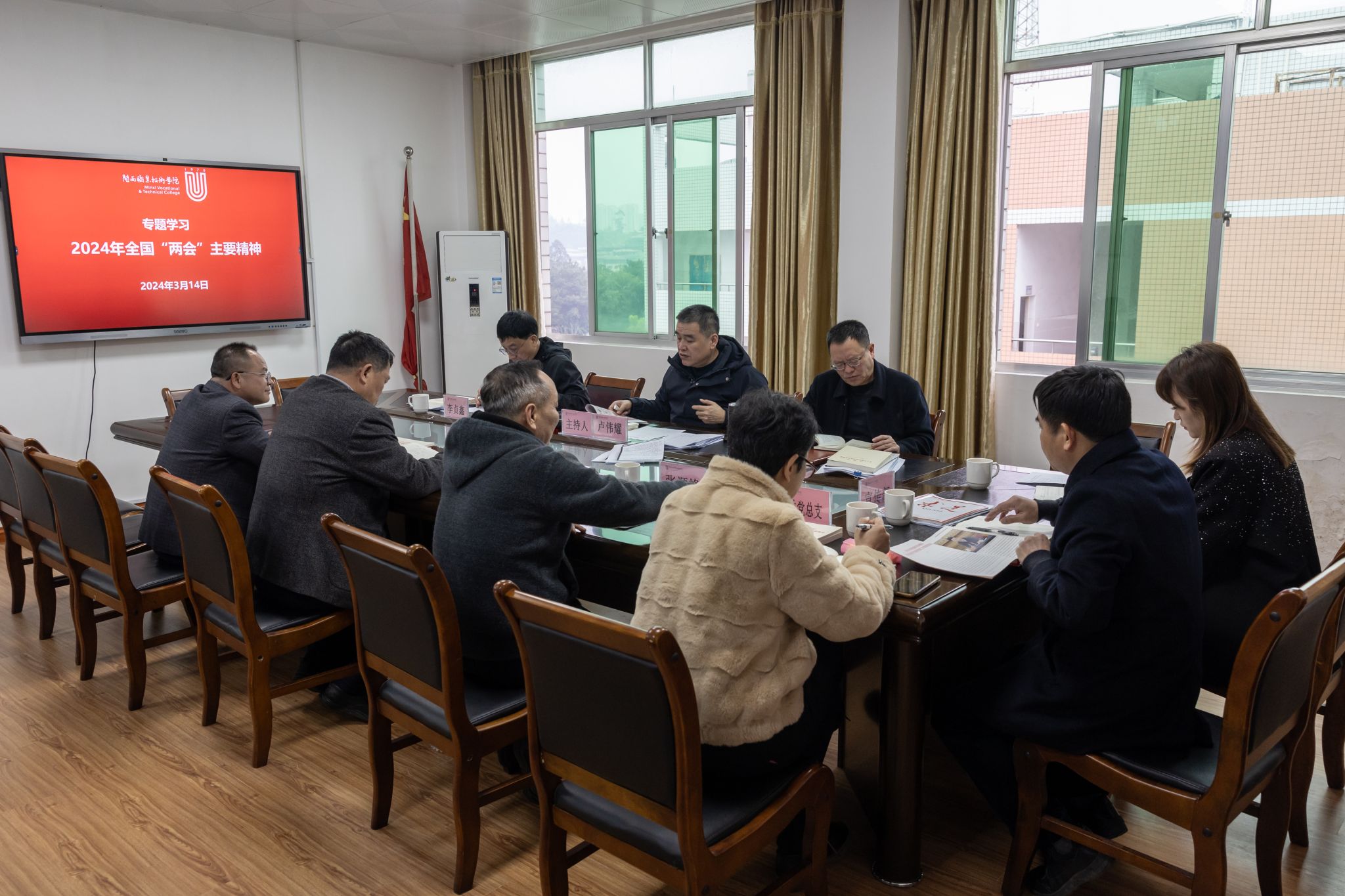 会议强调,学习贯彻全国两会精神是当前一项重大政治任务,要把学习贯彻两会精神与学习贯彻习近平总书记关于教育的重要论述和党的二十大精神结合起来,紧紧围绕推进中国式现代化这一最大政治,坚持高质量发展这一硬道理,以教育家精神引领高素质专业化教师队伍建设,大力发展数字教育,巩固拓展主题教育成果,聚焦重点任务久久为功,全力实施好我校2024年工作要点,切实把两会精神落到实处。