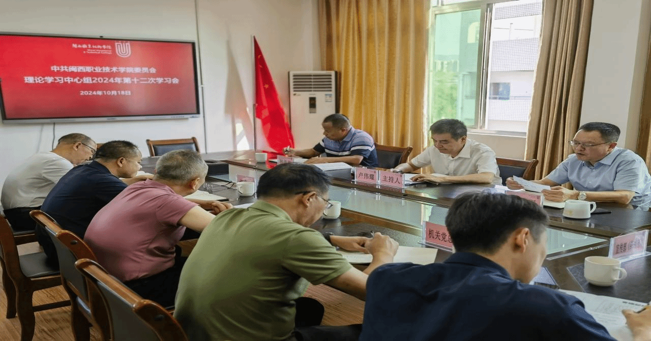 10月18日下午,校党委理论学习中心组2024年第十二次学习会在六楼会议室召开,专题学习贯彻习近平总书记来闽考察重要讲话精神,认真学习省委、市委常委会(扩大)会议和全省领导干部大会精神。校党委书记卢伟耀主持学习会并领学,中心组成员聚焦学习主题,结合分管工作实际进行研讨学习交流。