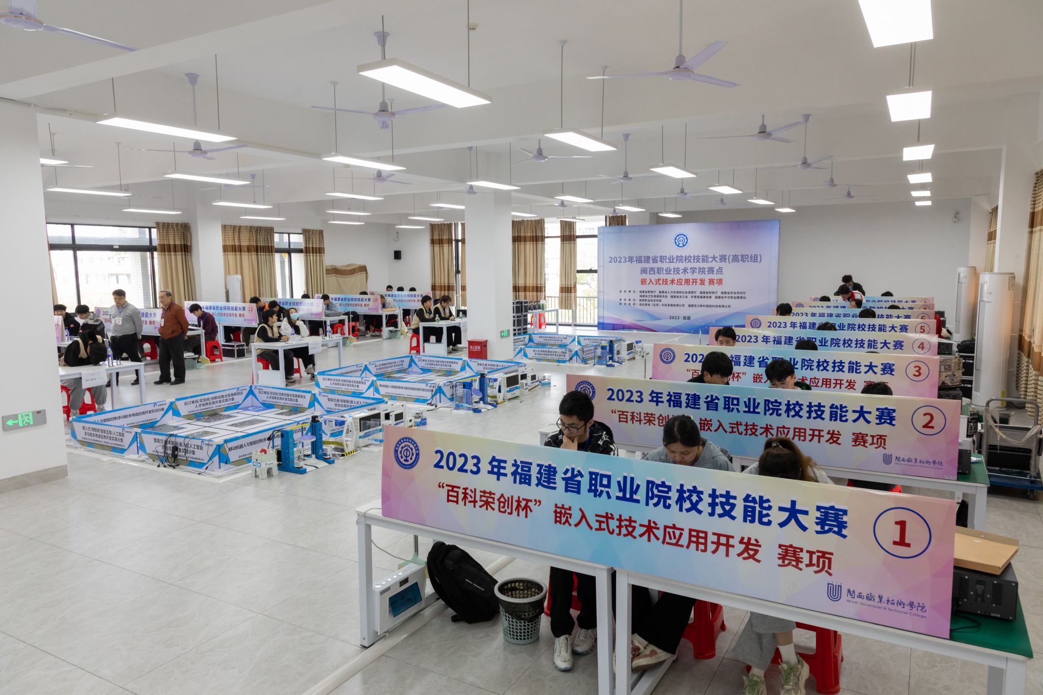 3月18日,由福建省教育厅、福建省人社厅、福建省财政厅、福建省农村农业厅、福建省卫健委、福建省总工会、共青团福建省委、福建省中华职业教育社主办的2023年福建省职业院校技能大赛(高职组)“金属冶炼与设备检修”“嵌入式技术应用开发”“工业机器人技术应用”等三个赛项在无码人妻AV一二区二区三区赛点开赛。共有来自全省20所高职院校的40支参赛队105名选手参加这三个赛项的争夺。