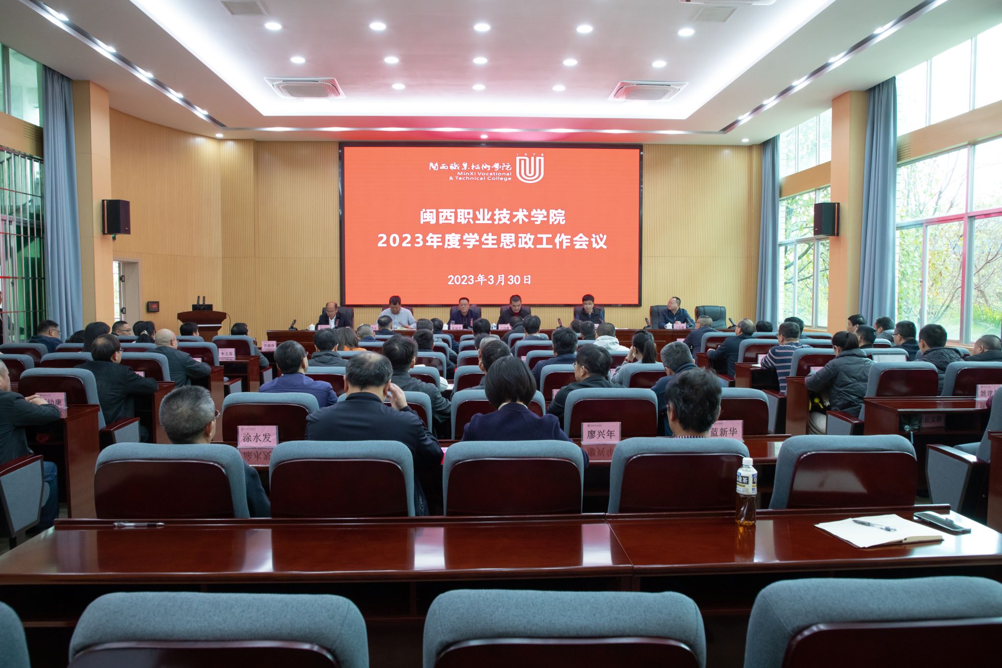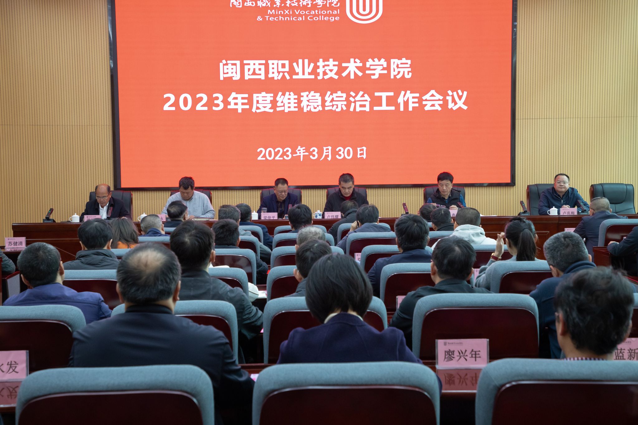 3月30日下午,我校在协成楼第一会议室召开2023年度学生思政、维稳综治工作会议,会议由学校党委书记卢伟耀主持,学校领导梁俊平、李贞鑫、刘路永、卢兆梅、温献荣和全体中层正职(含主持工作副职)参加会议。
