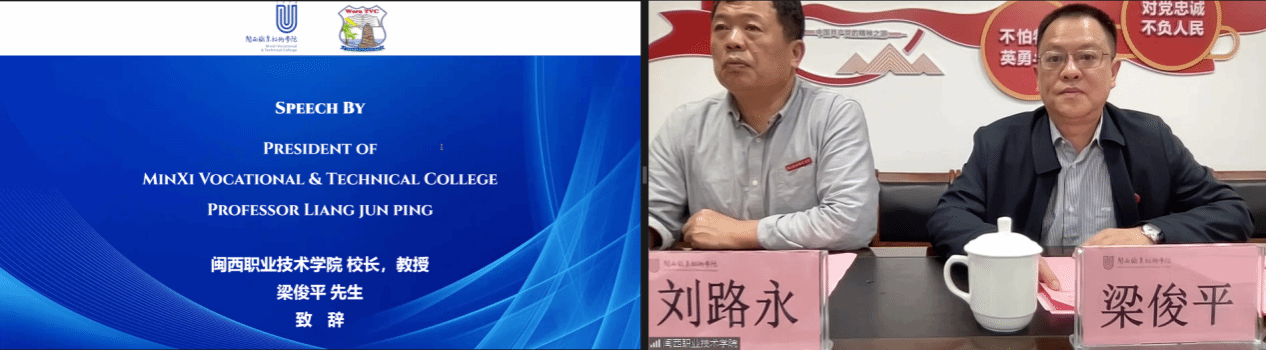 致辞环节结束后,在友好热烈的氛围中,刘路永副校长与韦鲁技术和职业学院校长进行了校际合作意向书“云签约”仪式,学校在持续拓展职业教育国际交流合作事业上迈出稳健、有力的步伐。