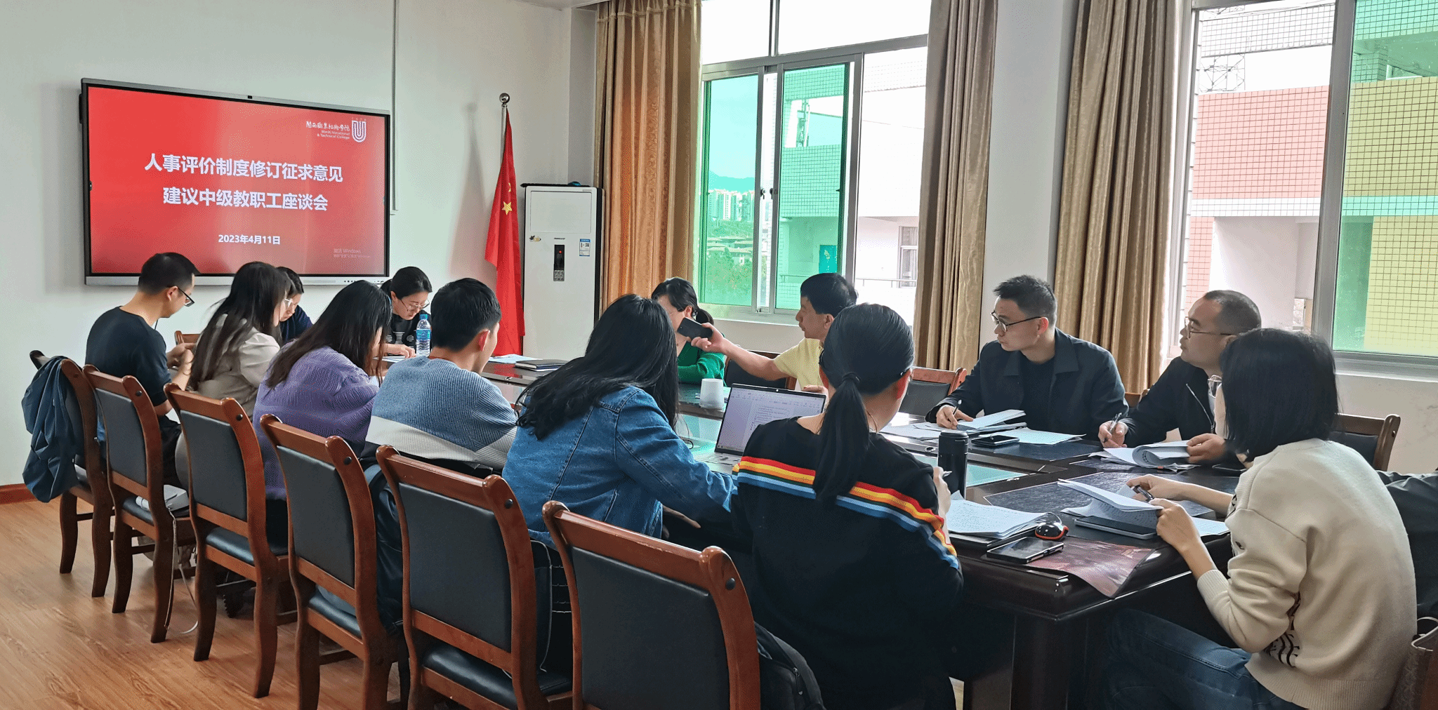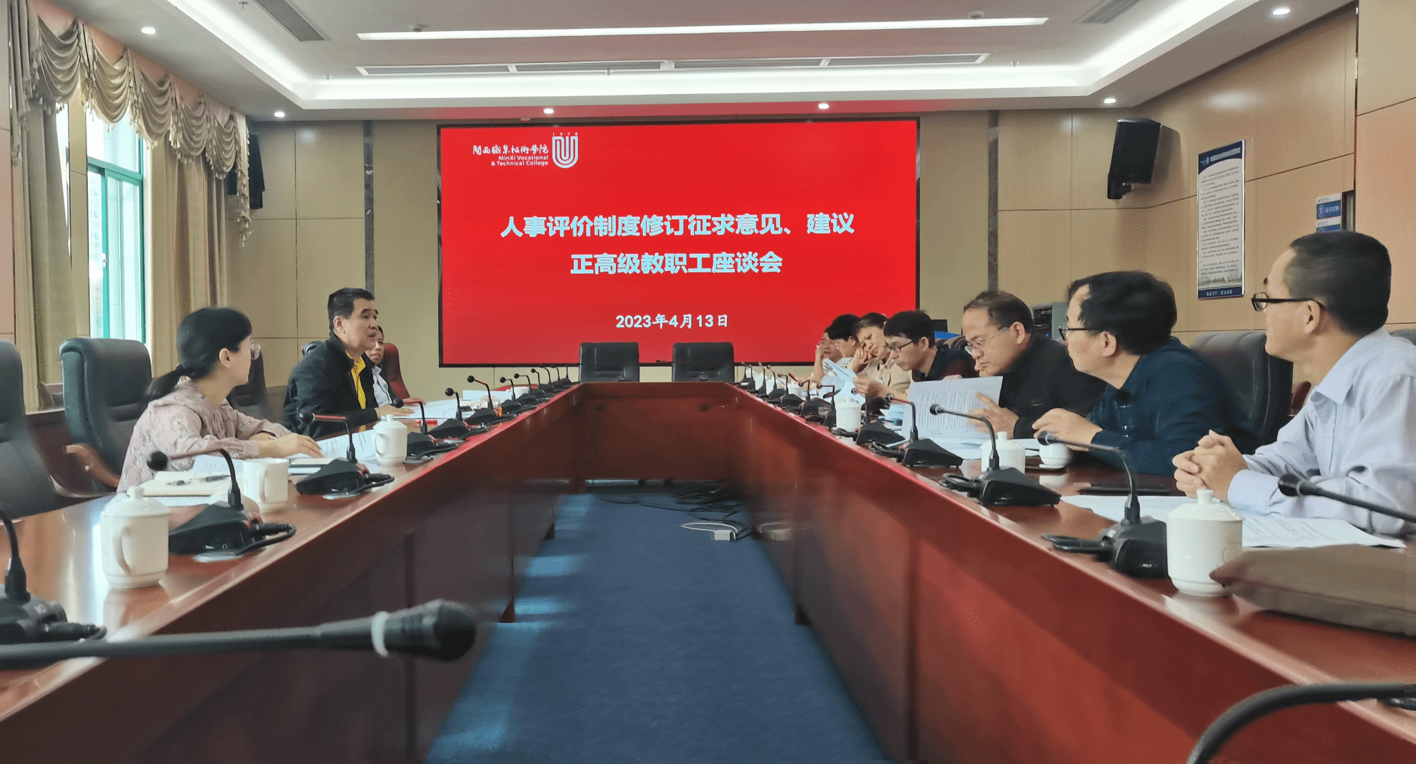 近日,为做好学校《教职工年度考核办法》《专业技术职务评聘办法》《专业技术职务岗位聘任办法》等人事评价制度修订工作,我校分别召开正高级、副高级、中级专业技术人员座谈会,征求对人事评价制度修订工作的意见、建议,卢伟耀书记、梁俊平校长、李贞鑫副书记分别主持三个座谈会。