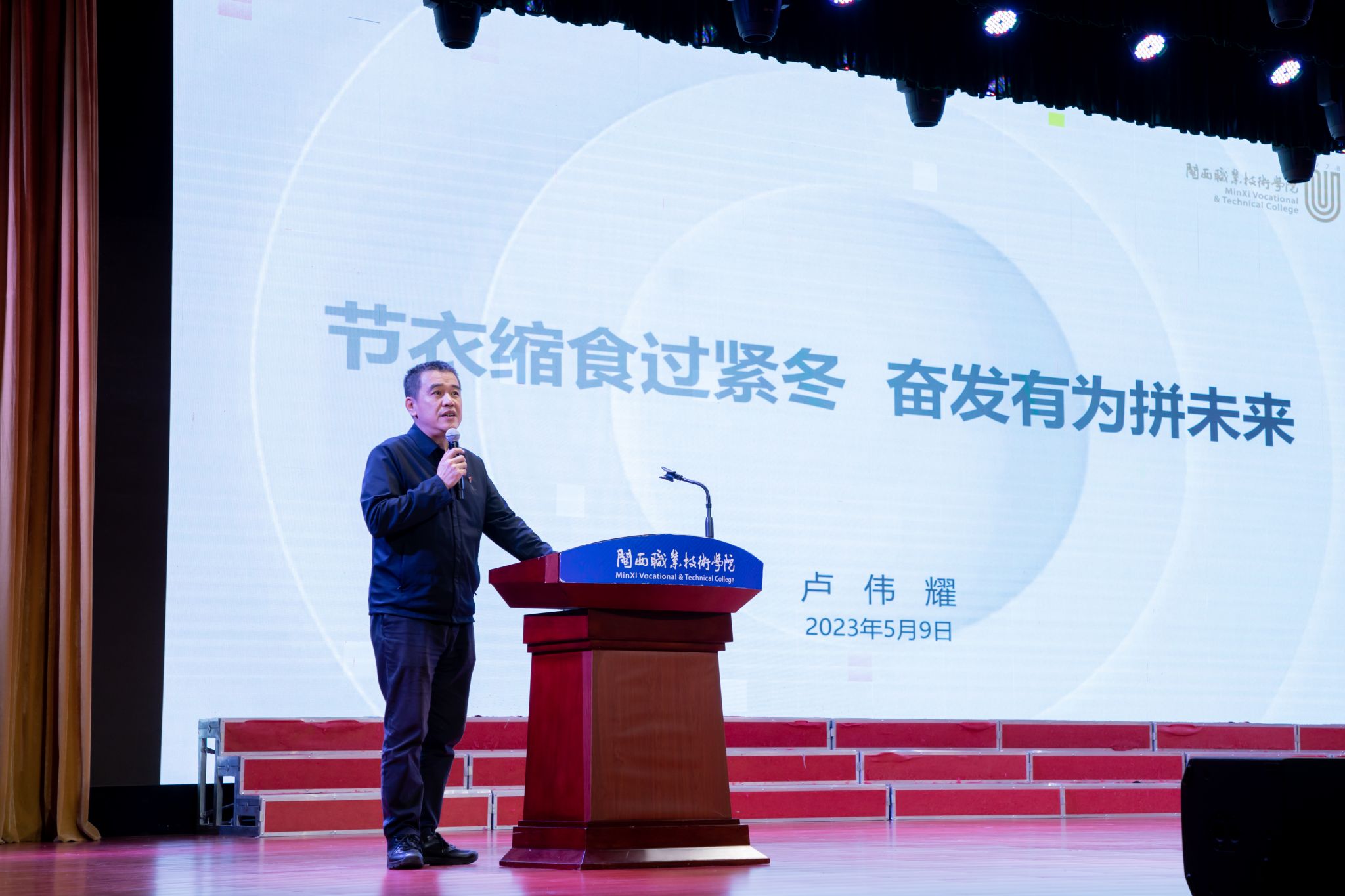 校党委卢伟耀书记介绍了学校的收支情况,强调了学校的发展目标:省双高→国双高→职业本科,要求全体教职工正视困难、共克时艰,发挥全体闽大人(在职在岗的、离退休的)的智慧,奋发有为拼出一条路来。