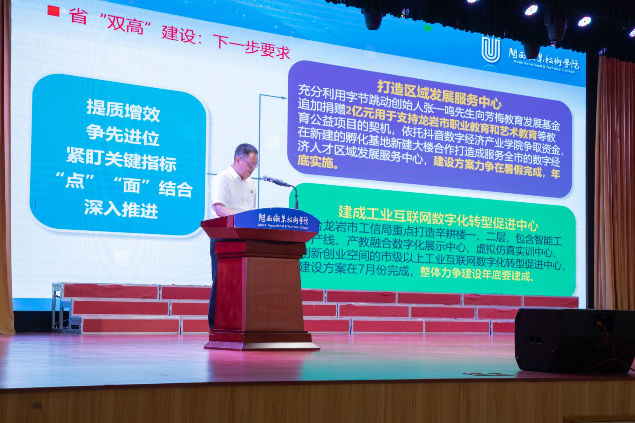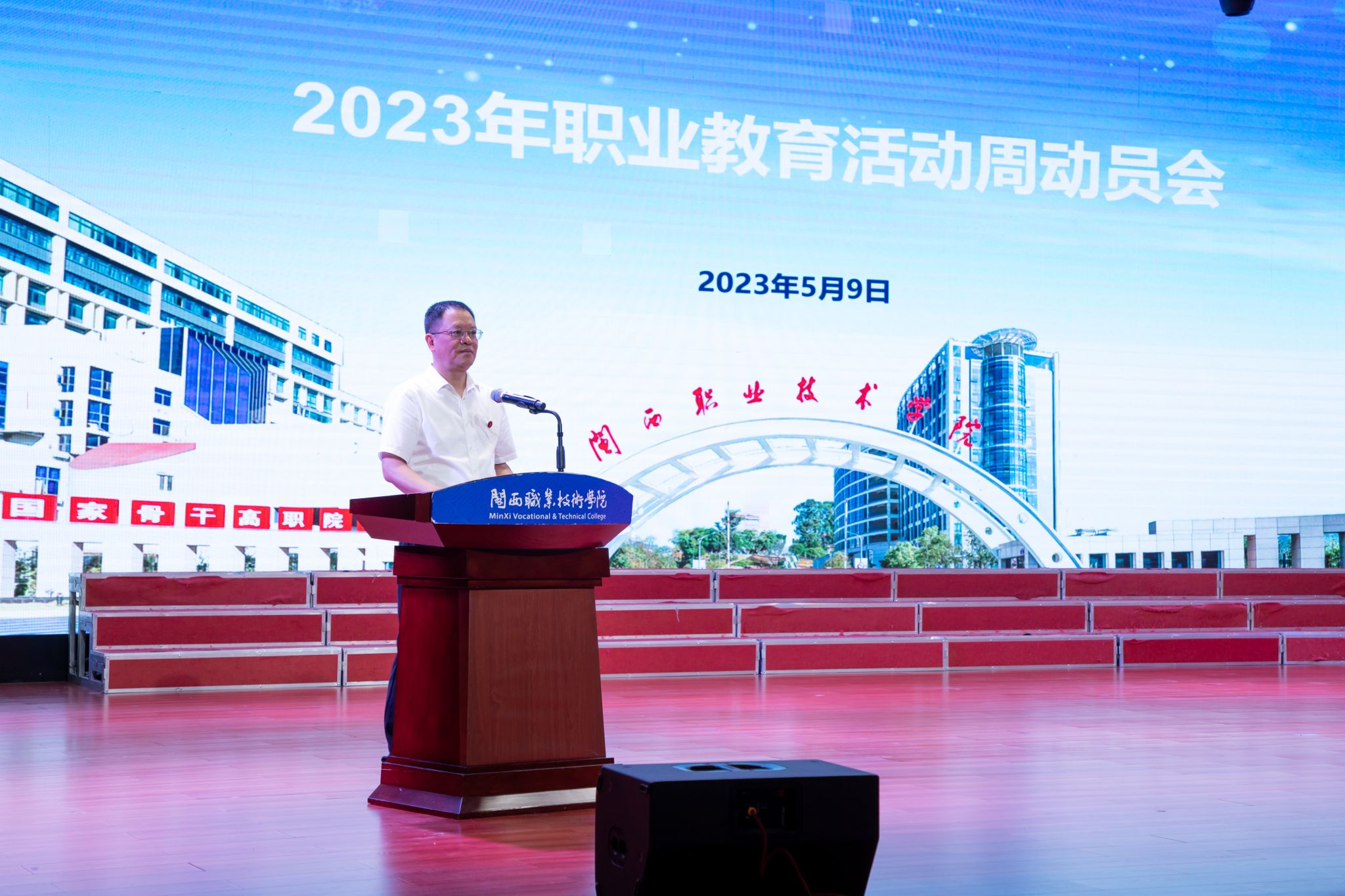会上,梁俊平校长做了职业教育周动员,并与大家分享交流了学校办学定位,对比了学校与部分革命老区院校、省内国家“双高校”及省内其他A类“双高校”的基本情况,分析了学校当前“双高建设”“三教改革”“治理提升”等重点工作,提出了下一步工作要求,并解析了2023年高职教育发展的新格局。