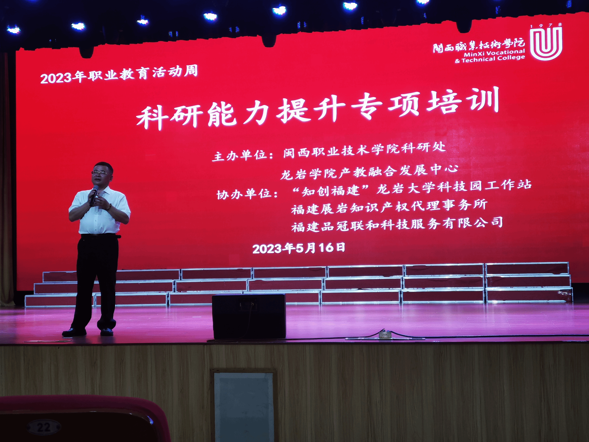本次培训由我校科研处和龙岩学院产教融合发展中心主办,“知创福建”龙岩大学科技园工作站、福建展岩知识产权代理事务所、福建品冠联和科技服务有限公司协办。