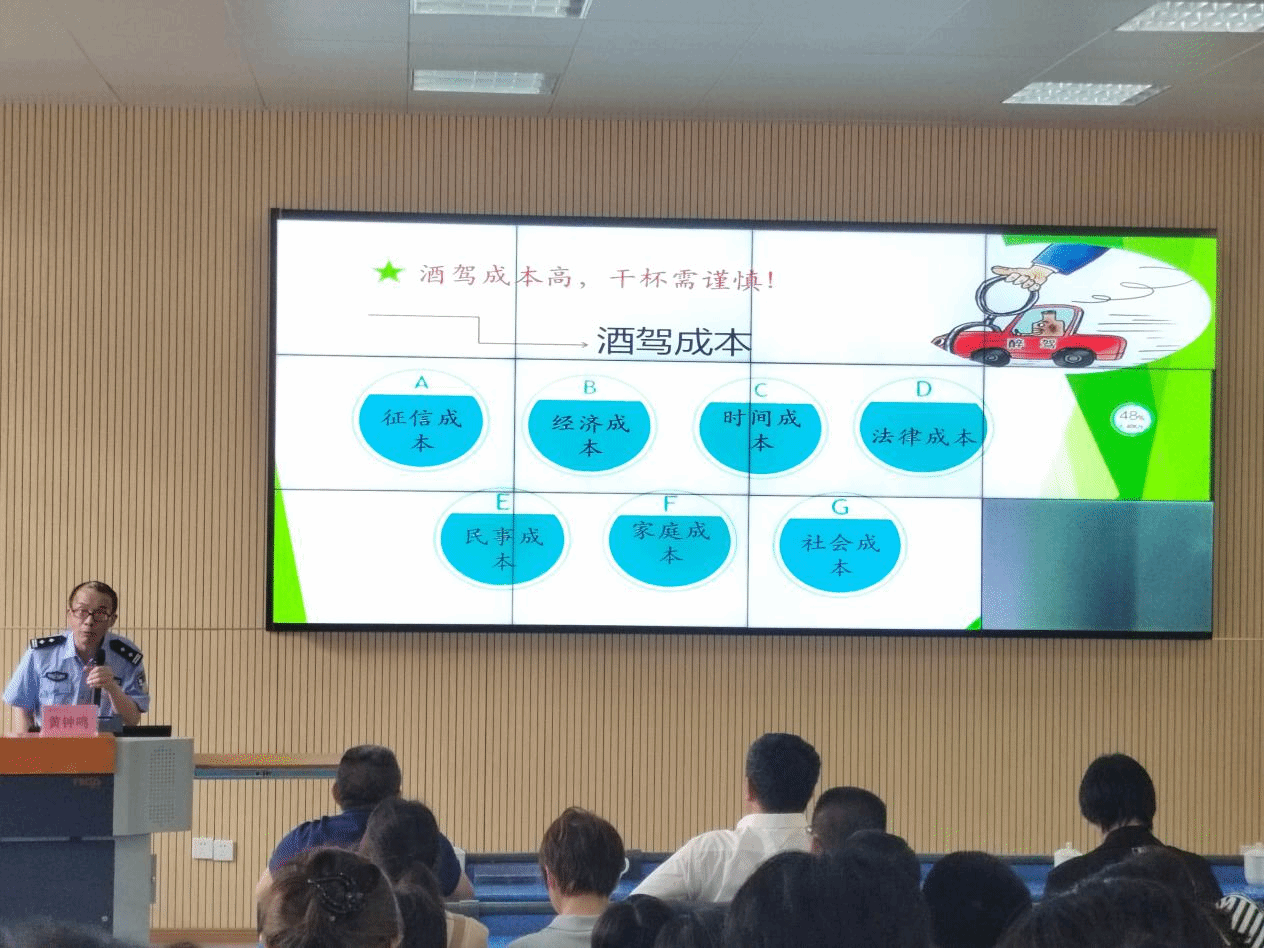 龙岩市公安局交警支队、福建省公安厅首批交通管理专业人才库成员黄钟鸣警官以《拒绝酒驾醉驾 安全文明出行》为题,结合交通安全警示视频,从“开展交通安全警示教育的必要性 ”“‘全国交通安全日’历年主题”“勿因忽微肇祸患 细节关乎生命”“坚守‘十个不敢’”“夏季安全文明出行注意事项”等五个方面,向师生细致讲解“文明驾驶,礼让行人”“生命无价,拒绝酒驾”“一盔一带”等交通安全常识。讲座内容丰富、图文并茂、数据翔实,以案说法,为大家上了一堂实用、好用的交通安全教育讲座。
