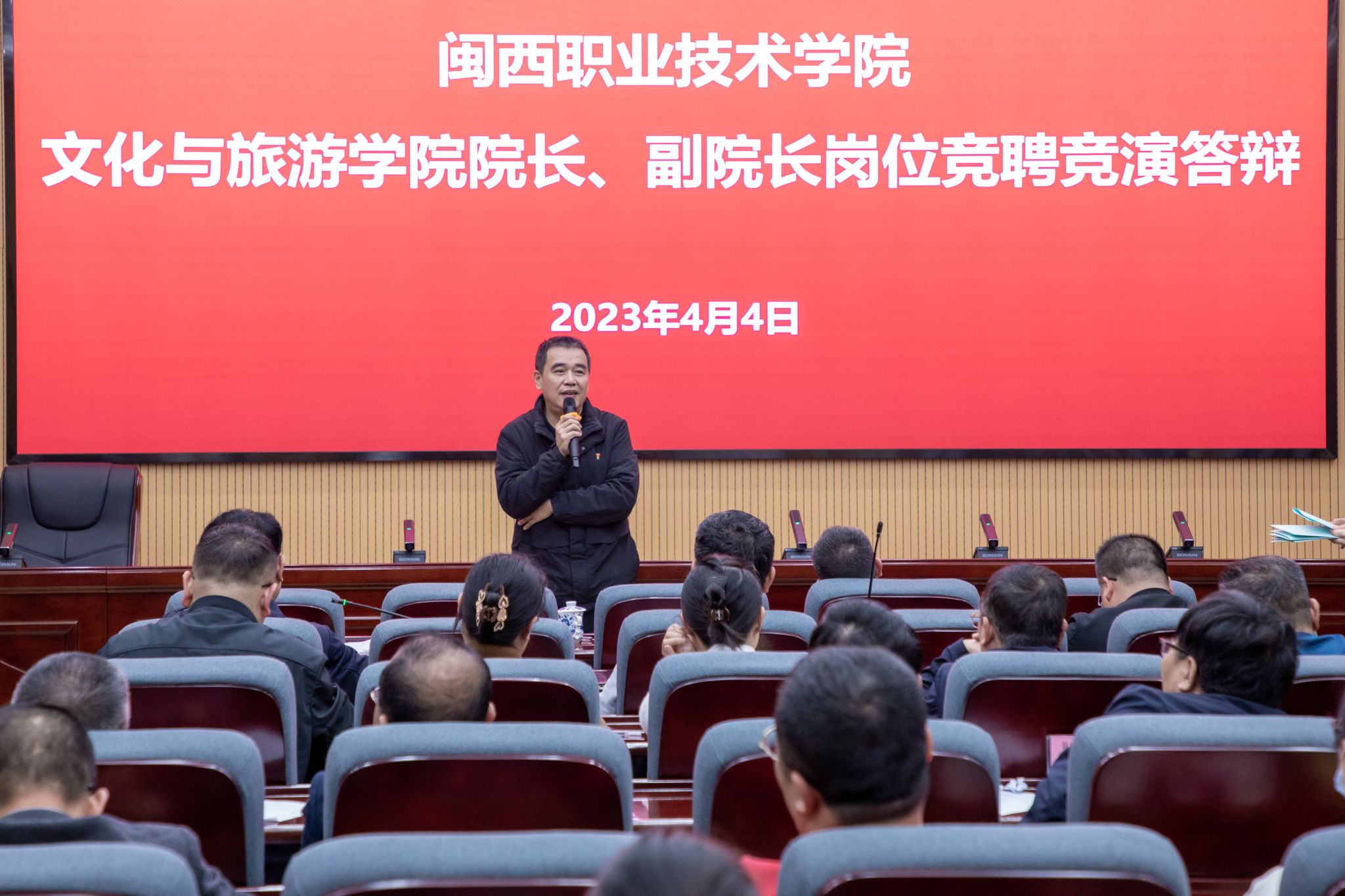 为贯彻落实《推进领导干部能上能下规定》文件精神,切实践行全市教育发展大会“落实教师职务‘能上能下’聘用机制”的要求,推进学校干部人事制度改革,拓宽选人用人渠道,促进优秀人才脱颖而出,激发学校干部队伍活力,学校党委瞄准二级学院改革发展瓶颈,确定以文化与旅游学院为试点单位,在全校正式在编教职工范围内实行“揭榜挂帅”,开展文化与旅游学院院长、副院长岗位竞聘工作。