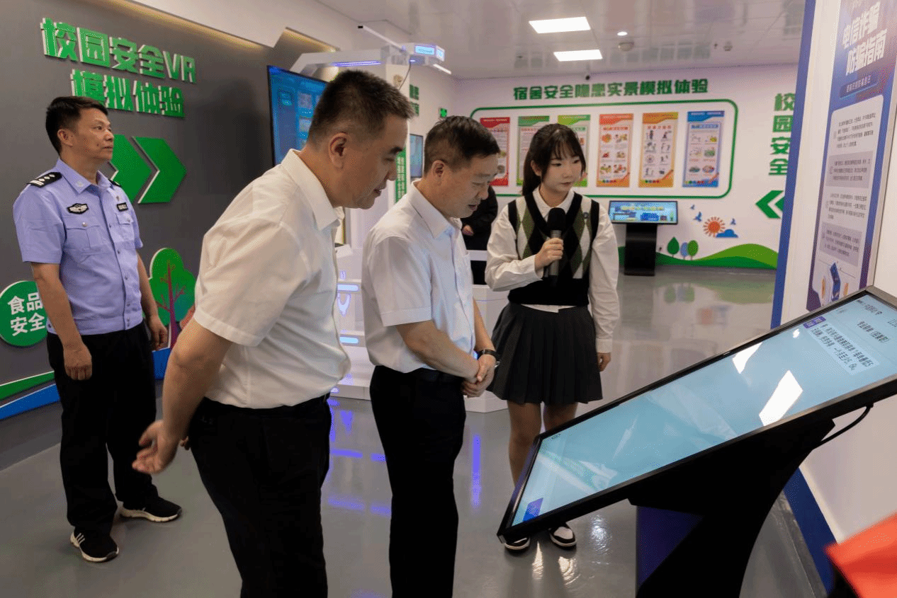 据悉,教育馆以科技赋能安全建设,运用实景仿真、数字化演示、VR虚拟体验等方式推进安全文化知识全面、立体、多维度呈现,内容包含国家安全教育、禁毒教育、防电信诈骗、校园安全教育、消防安全教育、交通安全教育、急救护理等模块,打造出富有科技感、体验感的沉浸式互动课堂。开馆仪式后,将有计划性地组织全校学生进馆开展沉浸式学习体验,真正实现校园安全教育全覆盖、常态化、有成效。