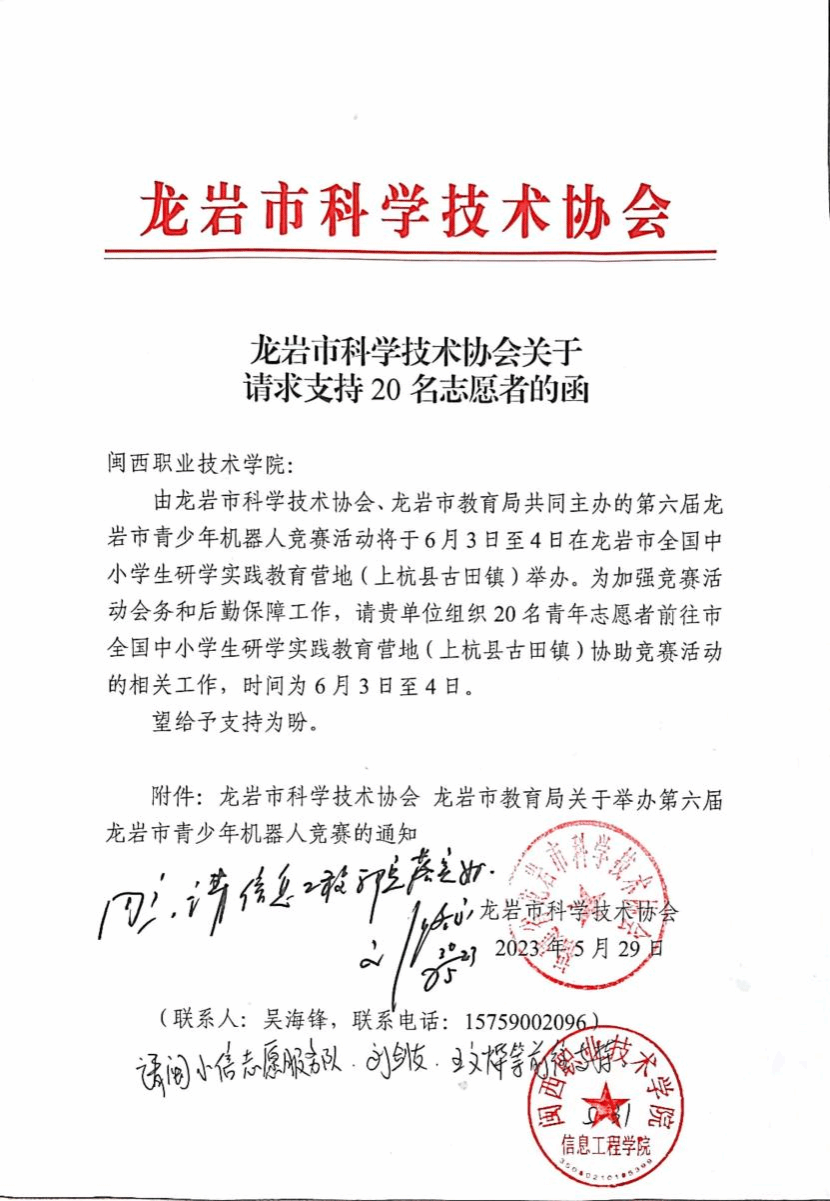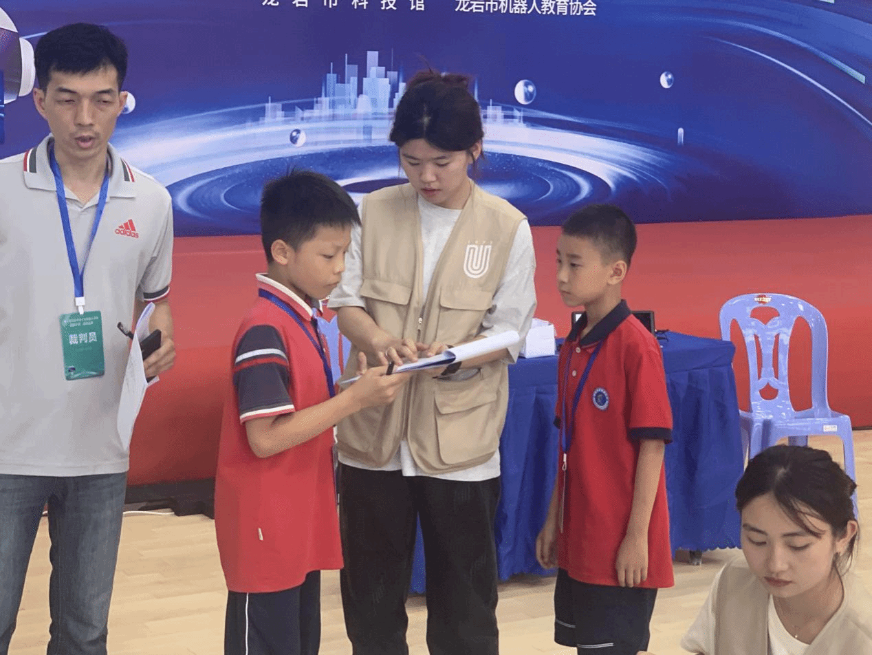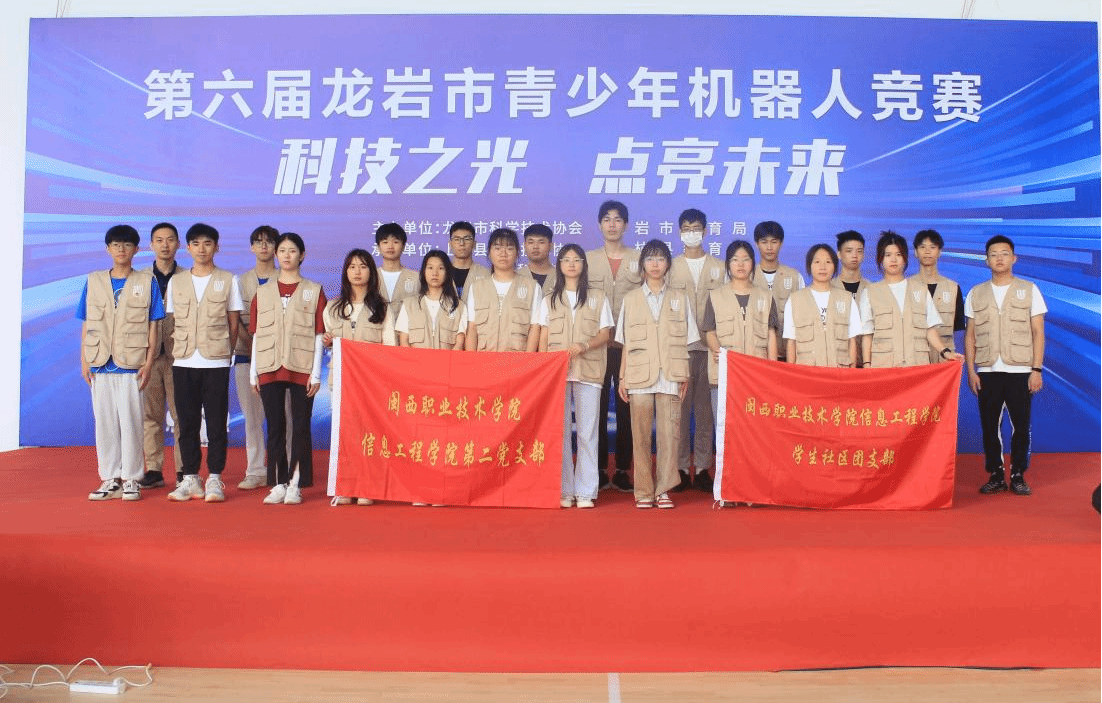 在本次竞赛活动中,闽小信志愿服务队的志愿者们在竞赛活动中开展裁判、助理裁判、选手报到会务、后勤保障、竞赛组织等工作。经过紧张激烈的竞赛,机器人极限挑战赛决出了一等奖4队、二等奖6队、三等奖10队;机器人创新挑战赛决出了一等奖3队、二等奖5队、三等奖7队;机器人创意比赛决出了一等奖1队、二等奖2队、三等奖2队;垃圾分类机器人挑战赛决出了一等奖4队、二等奖6队、三等奖9队。本届大赛主题为“科技之光 点亮未来”,由龙岩市科协、市教育局共同主办,上杭县科协、县教育局、龙岩市科技馆、龙岩市机器人教育协会共同承办。