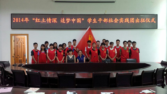 6月30日下午,我院“红土情深·追梦中国”学生干部社会实践团出征仪式在办公楼二楼会议室举行。院团委负责人、各学生组织主要干部及后备干部代表参加。出征仪式由院团委副书记连玲娜主持。