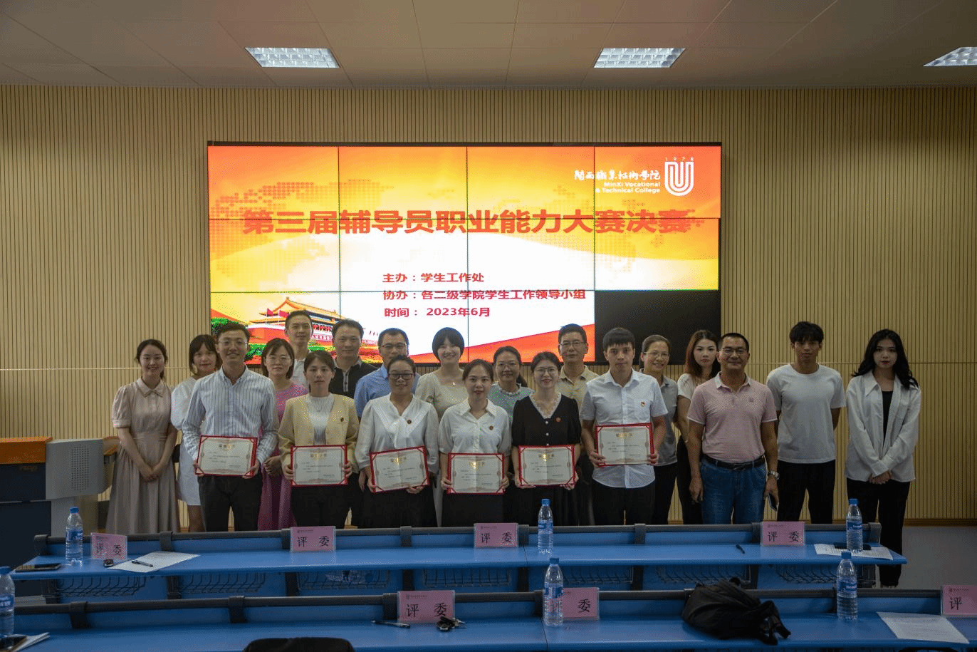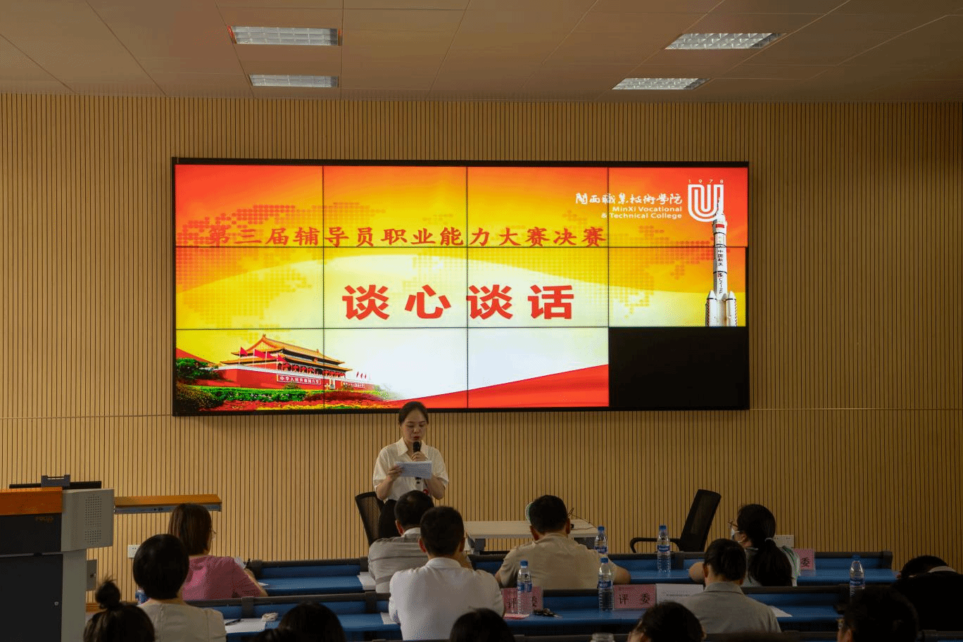 本次大赛从动员部署,经初赛笔试选拔、复赛案例分析,共有6名辅导员入围决赛。大赛设置的三个环节,全面综合地考察辅导员的理论水平、职业能力和综合素养。决赛环节为谈心谈话,主要考察辅导员对学生特征、学生成长成才规律的了解把握程度,对学生的教育引导能力、解决理论困惑和实际问题的能力等。最终,经过激烈角逐,医学护理学院黄橙橙荣获一等奖,智能制造学院郭晶红和城乡建筑学院余换新荣获二等奖,医学护理学院吴炜圣、陈国良和信息工程学院郑冬梅荣获三等奖。
