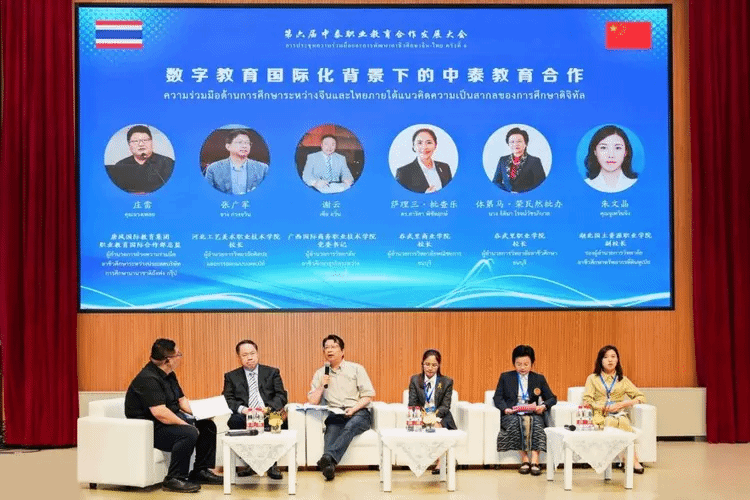 大会过程中,与会的中、泰两国职业院校代表开展了两场中泰职业教育圆桌论坛,分别就“数字教育国际化背景下的中泰教育合作”以及“深化中泰校际合作、推动‘中文+职业技能’高质量发展两个话题展开深入研讨,在“在后疫情时代通过现代教育技术加强两国教育合作”以及“将‘中文+职业技能’培训基地项目做深做实、促进两国人文和学术交流”等方面达成共识。