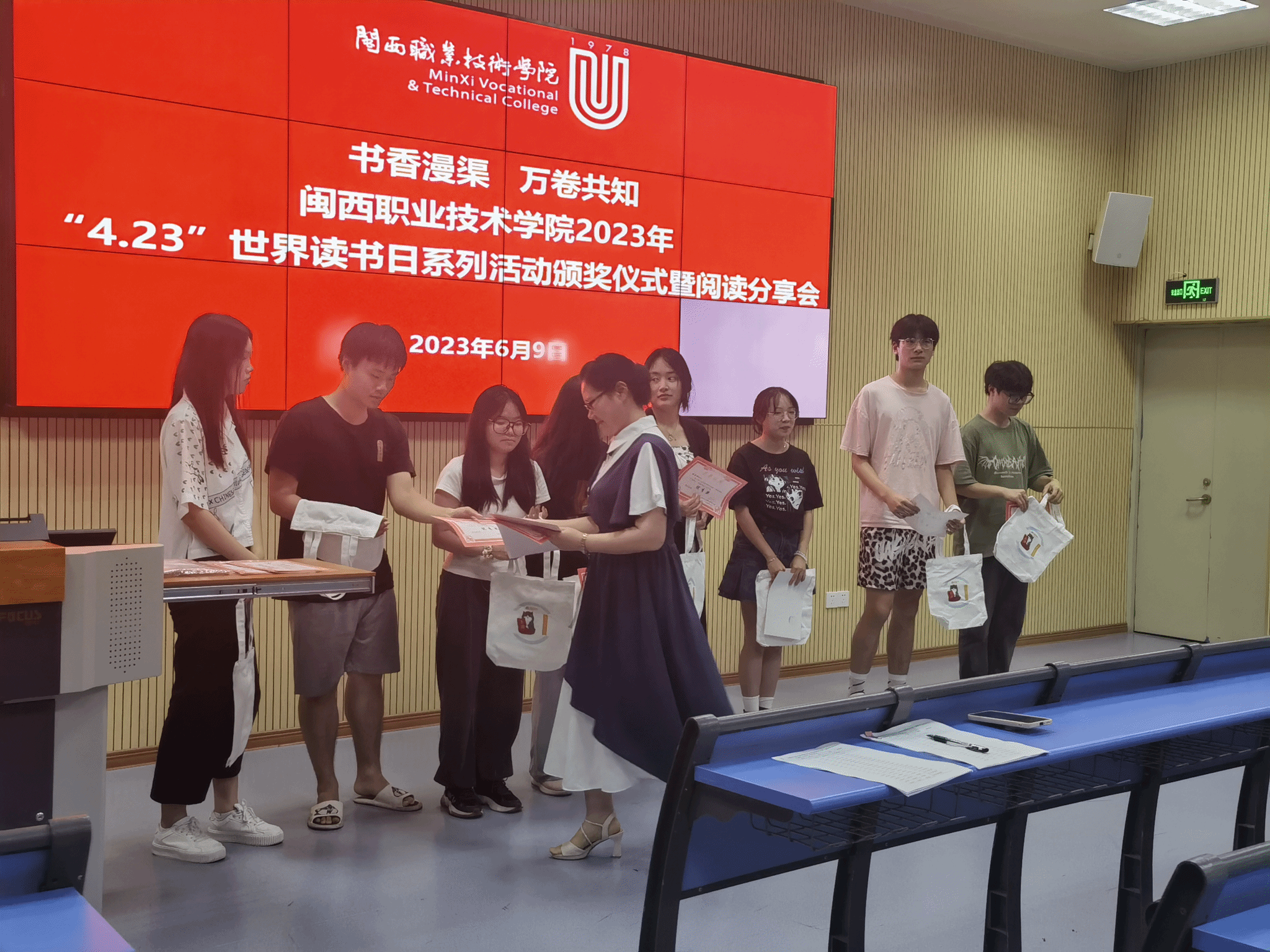6月9日晚,我校2023年“4.23”世界读书日系列活动颁奖仪式及阅读分享会在望云楼学术报告厅举行。我校以“4.23世界读书日”为契机,通过“书香漫渠,不负春光”图书推荐、阅读竞赛、评选“阅读之星”“优秀读者”等一系列与读书相关的活动,丰富我校学子们的课余生活,传播经典文化。