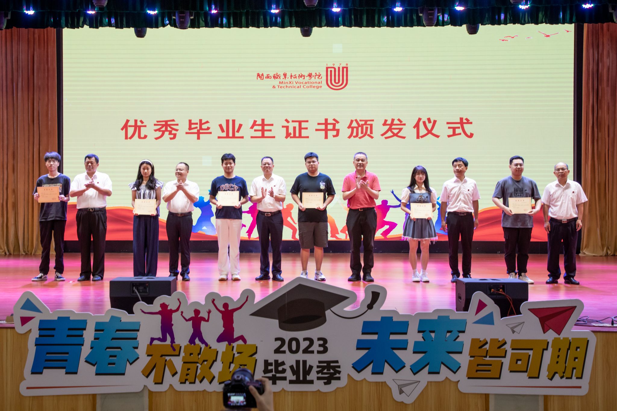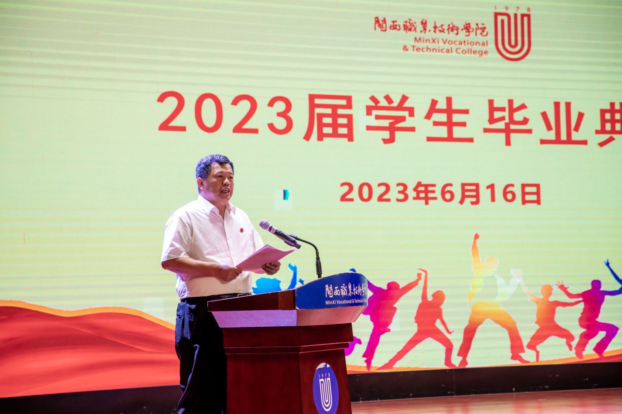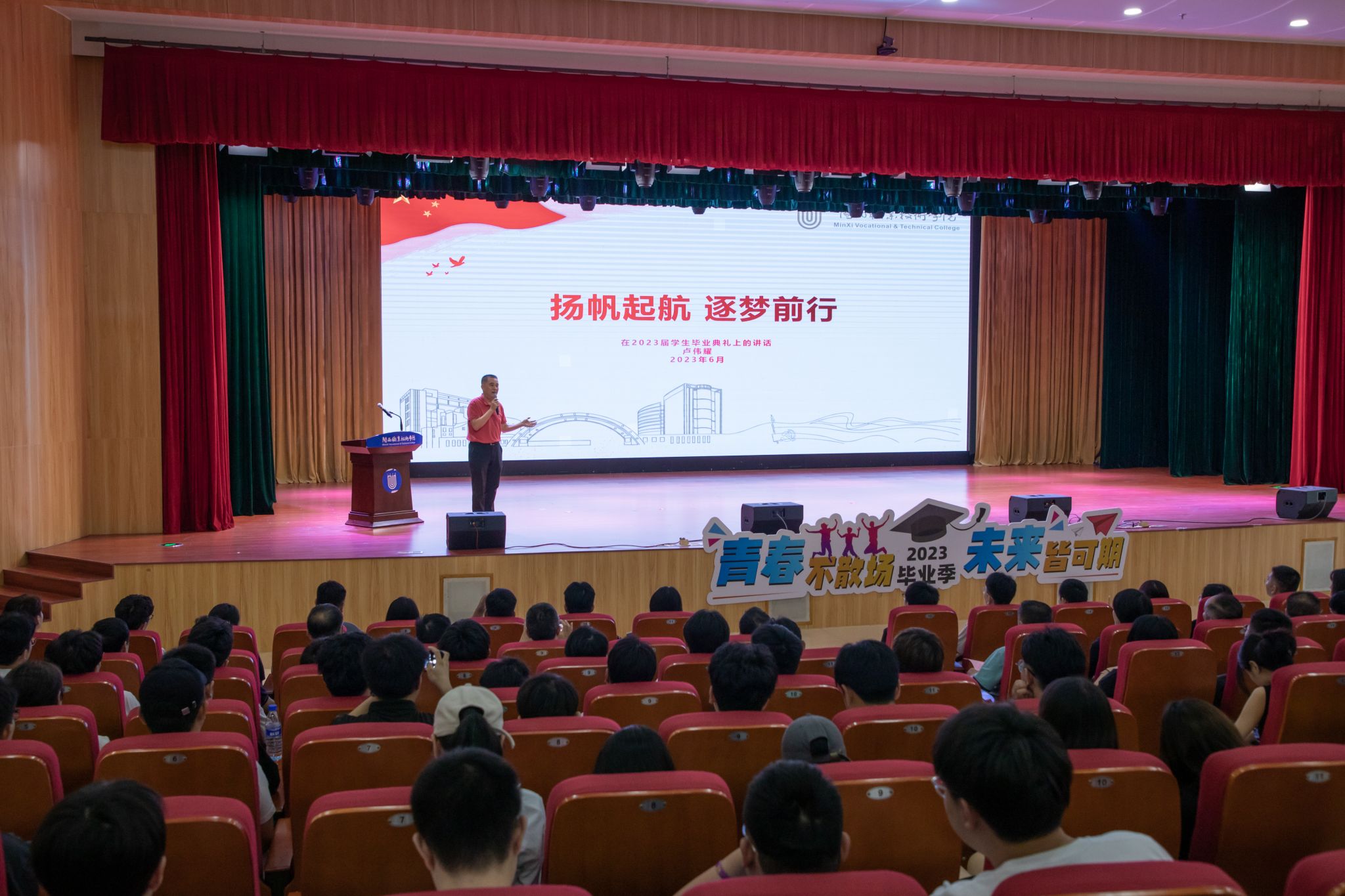 6月16日上午,我校 2023届毕业生毕业典礼大匠堂隆重举行。学校党委卢伟耀书记、校长梁俊平教授、党委李贞鑫副书记、刘路永副校长、卢兆梅副校长、校纪委温献荣书记,各相关职能部门、各二级学院主要领导,教师代表以及毕业生代表出席典礼。典礼由刘路永副校长主持。