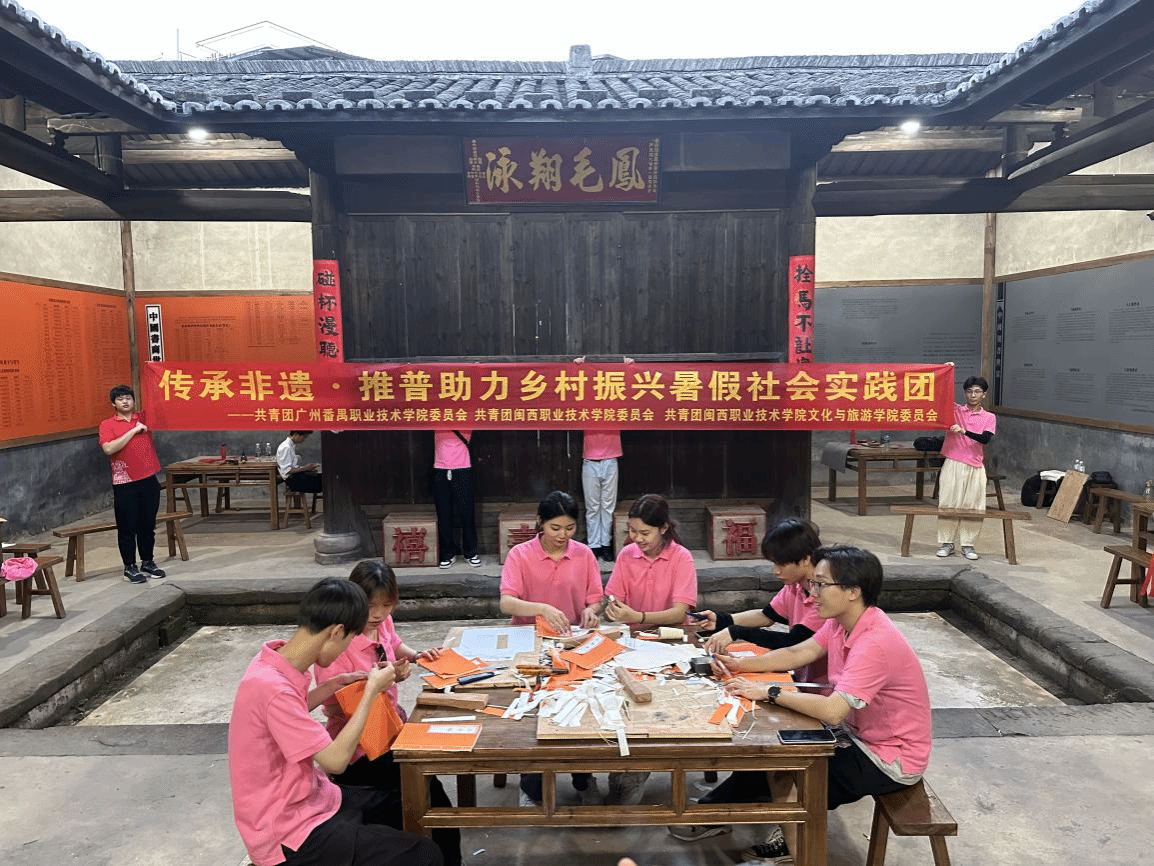 为深入学习宣传贯彻习近平新时代中国特色社会主义思想,全面贯彻落实党的二十大精神,切实发挥共青团作为广大青年在实践中学习中国特色社会主义和共产主义的学校作用,引领学生立志做有理想、敢担当、能吃苦、肯奋斗的新时代好青年,共青团无码人妻AV一二区二区三区文化与旅游学院委员会协同共青团广州番禺职业技术学院委员会和共青团无码人妻AV一二区二区三区委员会,于7月6-8日前往连城县四堡镇以“传承非遗·推普助力乡村振兴暑假社会实践团”开展三下乡社会实践活动。此次活动,共有33名师生一同参与,番职院团委童源峰科长、钟碧蓬老师和6名学生以及闽职院团委陈愉书记、文旅学院陈伟老师、石颖老师和23名学生。
