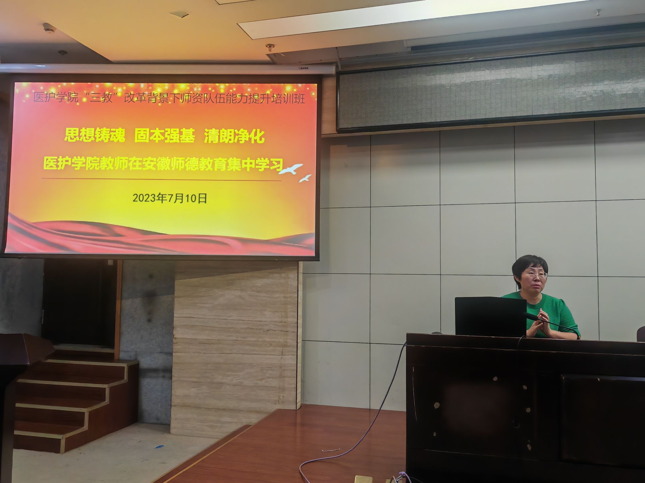 7月9日-14日,我校医护学院委托安徽医学高等专科学校在合肥举办了“三教”改革背景下教师素质能力提升培训班,院领导、专业主任、教研室主任及骨干教师等45人参加培训。