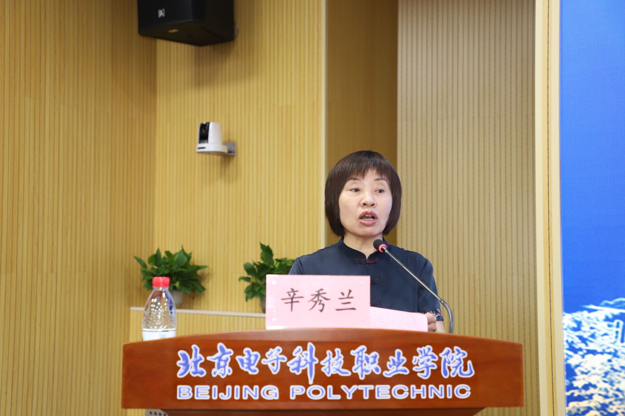 辛秀兰在致辞中代表北京电子科技职业学院欢迎我校教师赴京学习交流,向参训老师介绍北京电子科技职业学院办学基本情况。表示本次培训将邀请多位知名专家,联系行业领军企业,采取专题报告、现场教学和研讨交流相结合的方式开展。希望全体学员认真学习,及时归纳总结,在专业建设、人才培养模式改革、产教融合等方面发挥骨干引领作用。