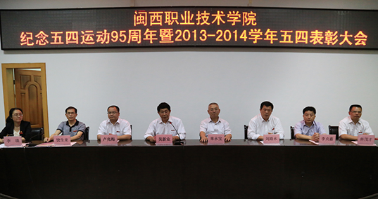 5月4日,我院在办公楼二楼会议室举行2013-2014学年纪念五四运动95周年暨五四表彰大会。院长来永宝教授,副院长吴新业、刘路永、卢兆梅,纪委书记李贞鑫,党委工作部、学生工作处、团委等部门负责同志出席大会,并为获奖集体和个人颁奖。各系(部)团委书记、各学生组织负责人及各系(部)团干、获奖代表出席了大会。本次大会由团委副书记连玲娜主持。