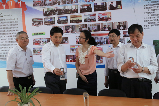 黄晓炎书记一行径直来到我院学生创业园,兴致勃勃地参观了我院省“创业之星”系列扶持项目的门店,与我院师生亲切交谈。在“立方体”格子铺,黄晓炎书记向学生创业者了解格子铺的经营模式和经营状况,拿起电子爱好者协会学生制作的耳机,仔细询问销售和赢利情况。在“心存鞋恋”手绘鞋店,黄晓炎书记边欣赏手绘鞋样品,边询问项目负责人办理工商营业执照情况。在"3C资讯"行,黄晓炎书记细致深入地了解电子产品销售状况特别是网络销售的状况。随后,黄晓炎书记来到学生创业俱乐部,听取了我院近年创业教育开展情况的汇报,当了解到我院学生创业俱乐部是KAB全国推广办公室授牌的“大学生KAB创业教育俱乐部”,在近两届全省“挑战杯”大学生创业计划大赛中,我院获得了5金5银8铜的优异成绩,位列全省高职高专组第一,被中华全国青年联合会、国际劳工组织授予“大学生KAB创业教育基地”等情况后,黄晓炎书记对我院取得的成绩表示赞许,对我院创业教育工作予以充分肯定。