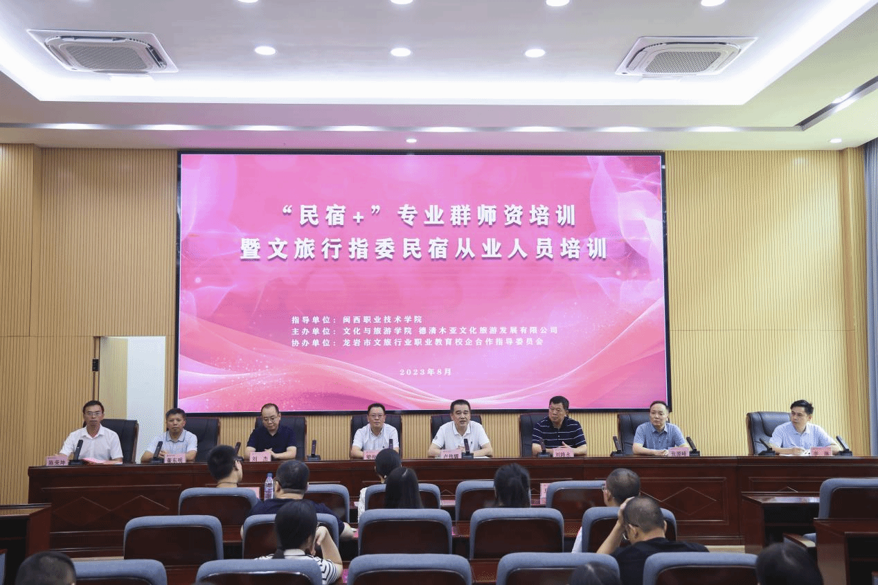 为推进“民宿+”专业群建设,推动产教融合发展,加快三教改革落地,提升教职工和龙岩文旅行指委民宿从业人员行业认知,促进龙岩民宿行业高质量发展,2023年8月22-24日,无码人妻AV一二区二区三区文化与旅游学院和德清木亚文化旅游发展有限公司联合主办了“2023年民宿+专业群师资培训暨文旅行指委民宿从业人员培训班”。校党委书记卢伟耀,校长梁俊平,副校长刘路永,以及相关部门领导出席了开班仪式。卢伟耀书记致辞,对德清木亚文化旅游发展有限公司刘杰等专家一行的到来表示热烈欢迎,并围绕民宿产业的发展对此次培训作出展望。