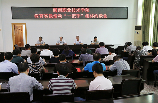 4月22日下午,我院在办公楼二楼会议室举行党的群众路线教育实践活动二级单位“一把手”集体约谈会。党委副书记、院长来永宝,党委委员、副院长卢兆梅,党委委员、纪委书记李贞鑫,院长助理李伟闽及各总支、部门、单位主要负责人出席会议。