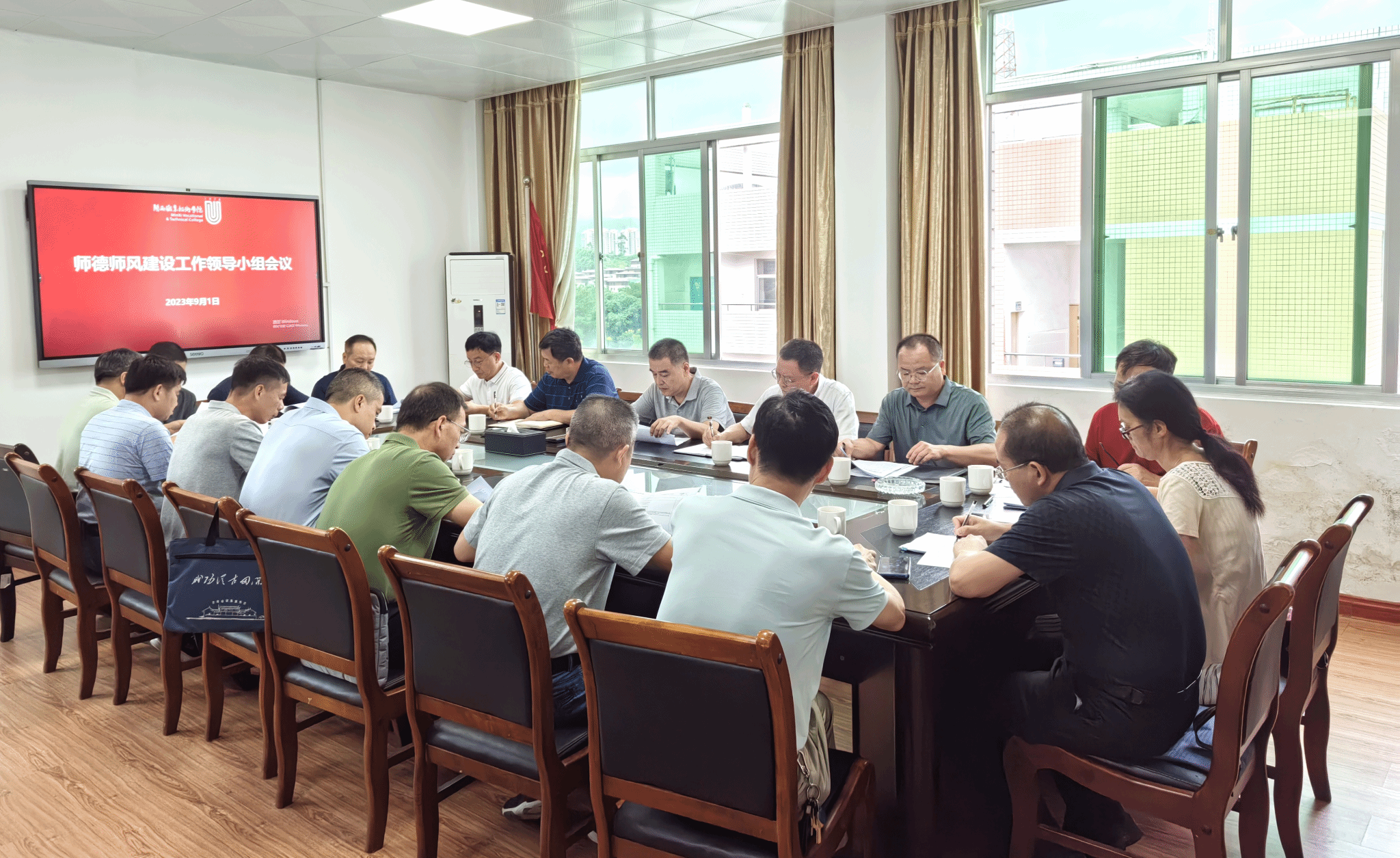 9月1日上午,我校召开师德师风建设工作会议、青年教师思想政治工作会议。校师德师风建设工作领导小组成员参加会议,学校党委书记卢伟耀主持会议。