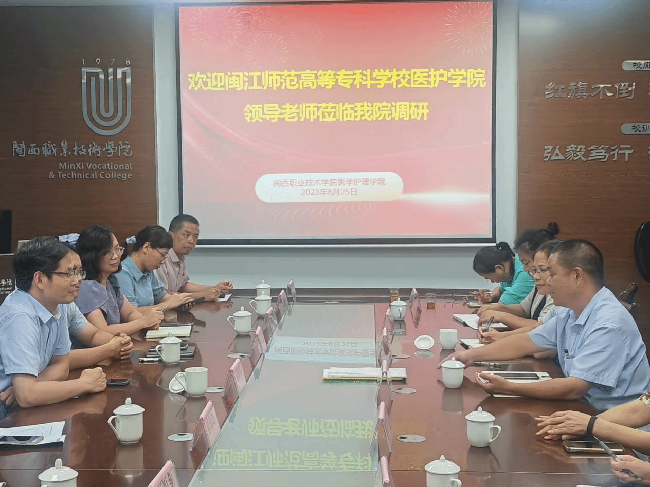 近日,闽江师范高等专科学校副校长刘翔炜携医护学院副院长吴茂龙、副书记陈锦香等11人来校调研交流。我校医学护理学院党政领导及专业主任、教研室主任参加座谈交流并陪同调研。