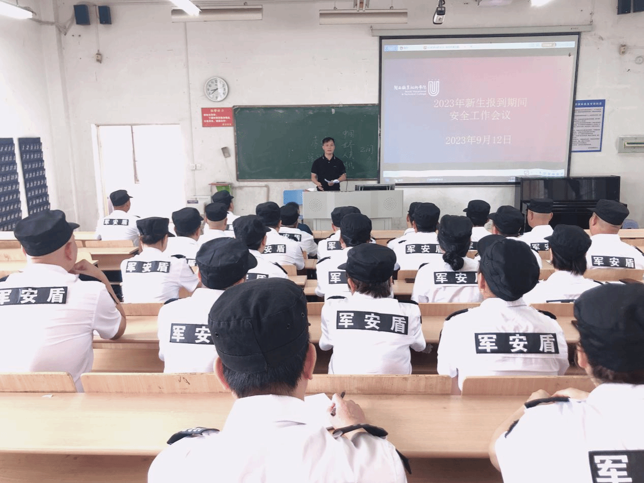 会上,围绕迎新工作展开,安全保卫处明确指出,要严格执行2023级新生入学工作方案,把迎新工作作为当前首要任务抓好落实,确保迎新平稳有序,全体安保队员按照安全保卫处制定的2023年新生入学安保工作安排表做好14至15号现场迎新期间安全工作。安全保卫处丁老师强调,本次迎新工作我们要以安全、有效、高效、周到为原则,主动、热情全力做好迎新工作。接着,保安公司负责人林成坤对公司近期安保服务工作作了讲评并就下一步工作作了安排,要求全体安保队员严格按照安全保卫处领导安排、部署,认真履行好各自岗位职责。