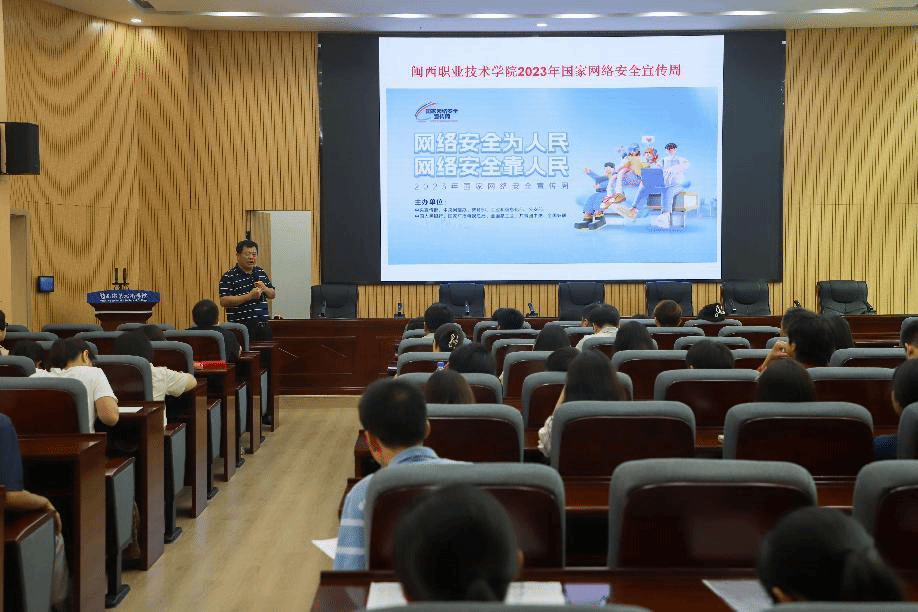 为深入学习宣传贯彻党的二十大精神和习近平总书记关于网络强国的重要思想,宣传贯彻习近平总书记对做好互联网时代的学校思想政治工作和意识形态工作、网络安全工作“四个坚持”的重要指示精神,广泛开展宣传教育活动,根据教育部思想政治工作司、市委网信办、市教育局的部署要求,9月12日,我校在协成楼第一会议室举行了2023年国家网络安全宣传周校园日活动,活动由信息与网络中心主任胡海锋主持,刘路永副校长出席仪式。