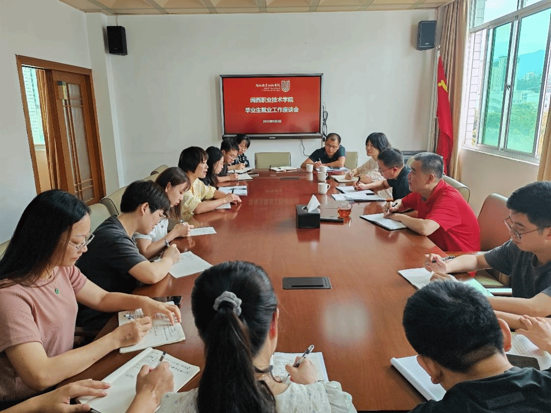 9月3日上午,我校在协成楼5楼会议室召开毕业生就业工作座谈会,校党委书记卢伟耀、校长梁俊平,学生工作处、校团委、创新创业学院负责人,学生工作处就业办工作人员及辅导员代表参加会议。