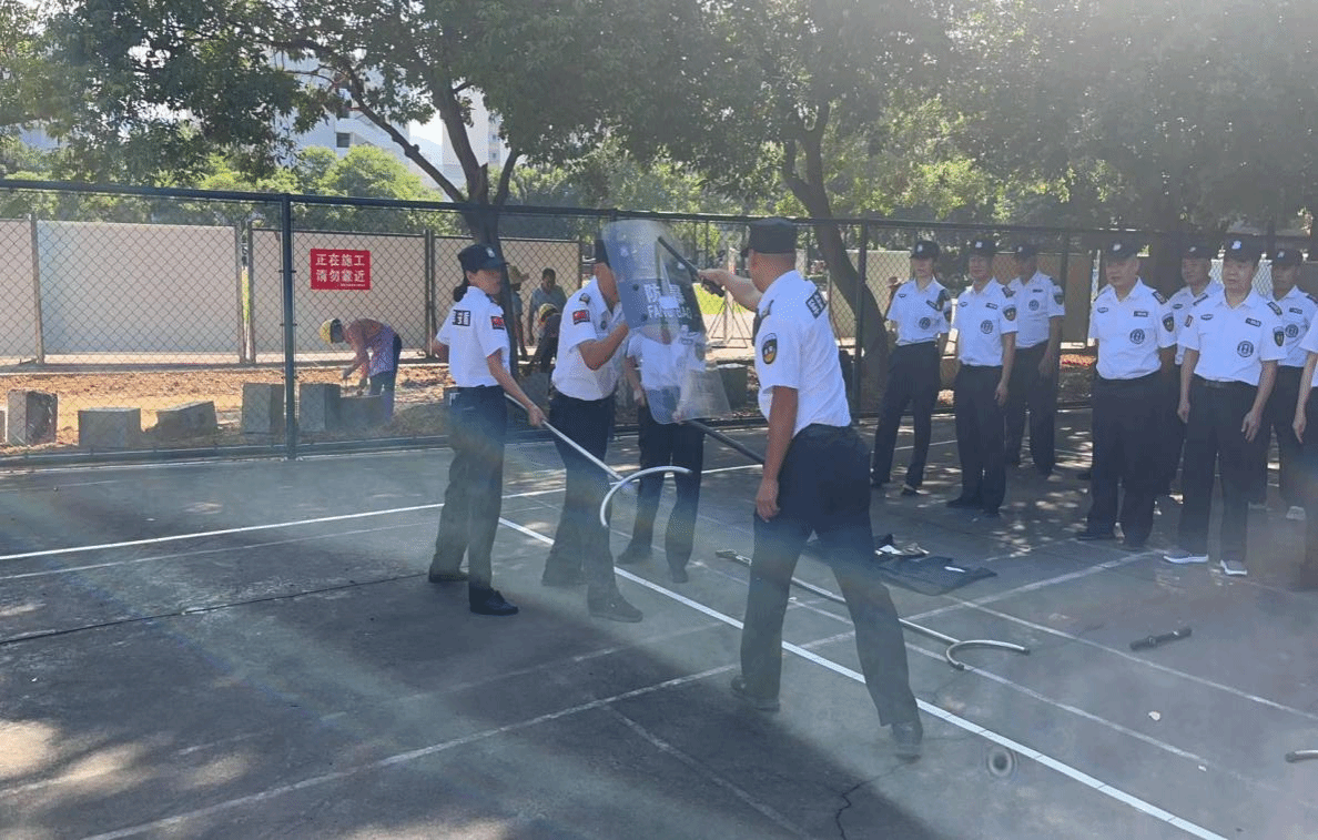 会议最后,王培林副处长对迎新期间安保人员顺利保障新生入学的工作给予充分肯定,希望全体安保人员再接再厉,继续保持,进一步加强自身学习。其次,他提出:安保人员在日常工作中要态度端正,团结一心,在学校领导的带领下,以高度的责任意识、大局意识,按照学校整体部署、要求,在岗在位,切实做好各项安全保卫工作,维护校园安全稳定。会议结束后,全体安保队员学习防暴器材的使用并进行实战演练,演练结束后又对校园周边进行节前安全隐患大排查行动。