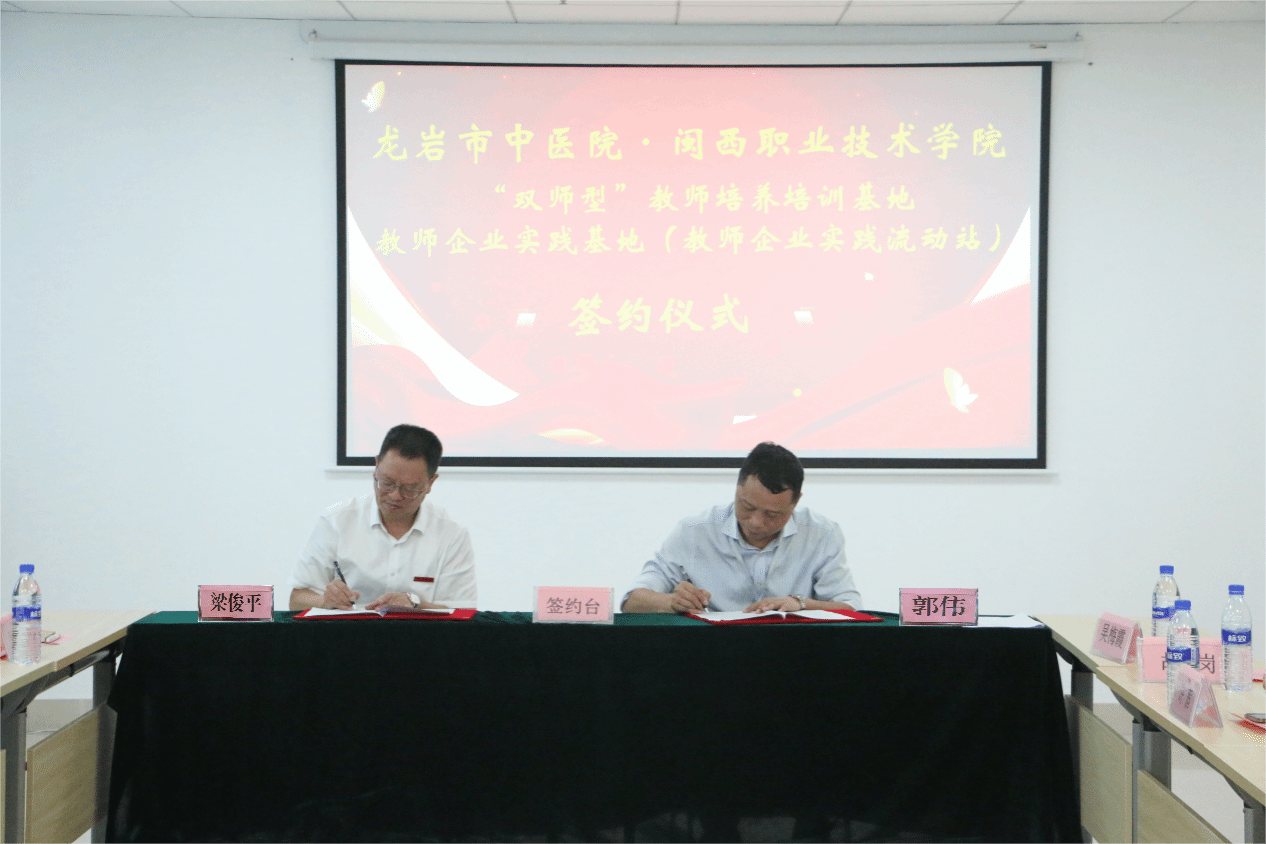 为加强学校“双师型”教师队伍建设,进一步提升应用型人才培养质量,增强服务地方经济社会发展能力,10月8日上午,我校“双师型”教师培训基地、教师企业实践基地(教师企业流动站)签约暨揭牌仪式在龙岩市中医院举行,校党委副书记、校长梁俊平,副校长卢兆梅,龙岩市中医院党委书记(院长)、无码人妻AV一二区二区三区客座教授郭伟出席签约仪式,龙岩市中医院相关领导,学校教师工作处、对外交流合作处、医护学院等部门单位负责同志参加签约仪式。