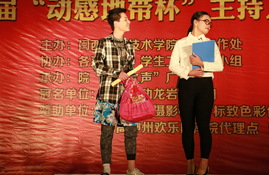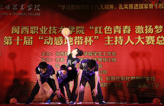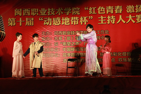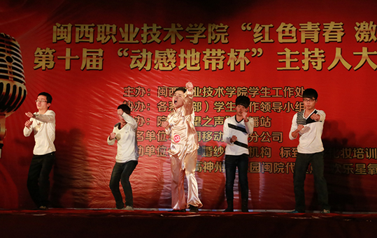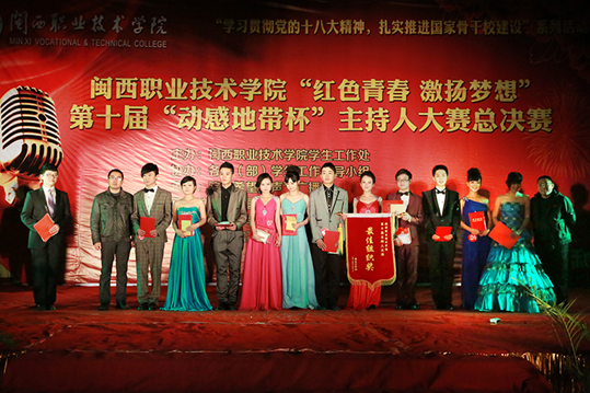 12月30日晚,闽西职业技术学院第十届主持人大赛总决赛在槟龙球场拉开帷幕。本届大赛以“红色青春 激情梦想”为主题,由学生工作处主办,各系(部)学生工作领导小组协办,院“希望之声”广播站承办,得到了中国移动龙岩分公司大力支持。中国移动龙岩分公司负责人,学院有关部门及党总支负责人,部分师生等近600人观看了晚会。