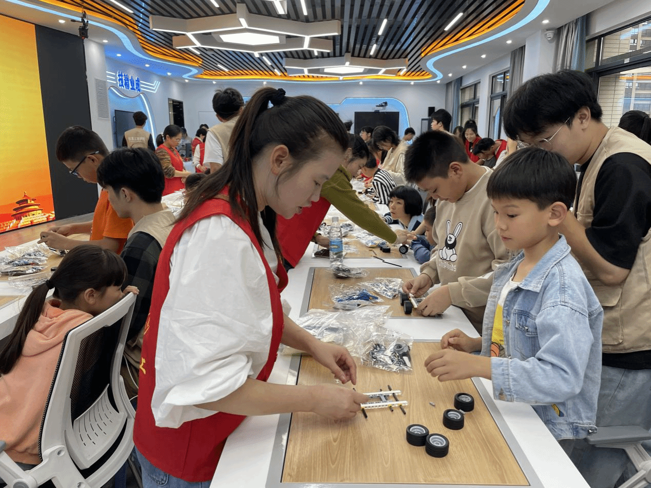 本次活动在辛耕楼开展,设有虚拟仿真VR体验、职业教育课堂体验、嵌入式开发职业技能竞赛体验、智慧编程教学、机械作品搭建等项目。在志愿者的引导下,小同学们佩戴上了充满未来科技感的VR眼镜,直观地感受到了与众不同的人生体验,在轻松的氛围中学习知识。在嵌入式开发职业技能竞赛体验场地,由2023年福建省职业院校技能大赛此赛项一等奖选手吴锴寿为小同学们讲解竞赛规则和技巧,演示了嵌入式小车如何智能完成竞赛任务。由福建省科技馆辅导员大赛一等奖选手王泽波为小同学们介绍了趣味动力车,小同学们根据奇思妙想搭建出自己的动力车,最后进行了进行作品评比。