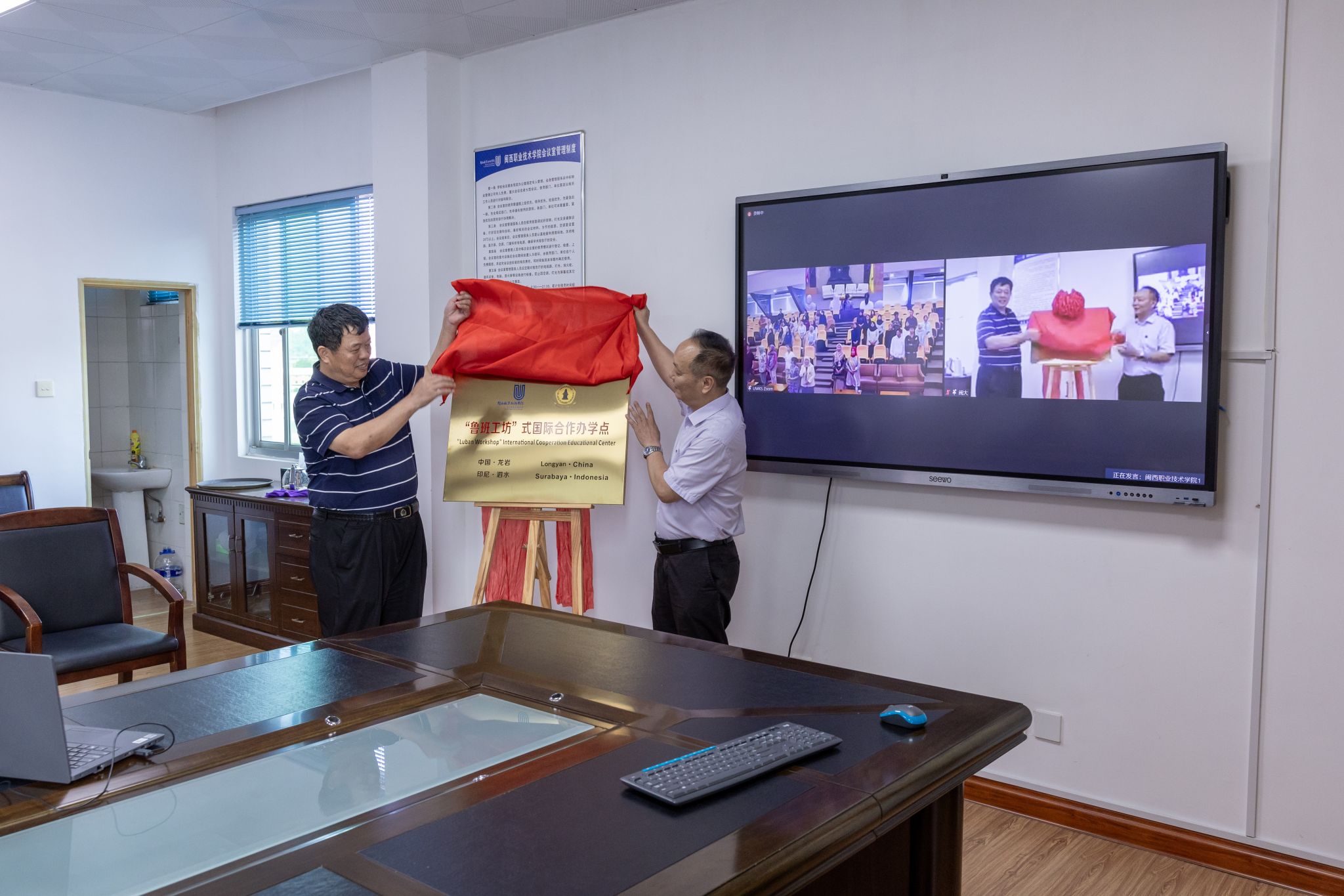 “云”签约仪式结束后,还举行了“鲁班工坊”式国际合作办学点暨“一带一路”职业技能培训中心的揭牌仪式,这标志着我校与印尼职业教育合作的迈向新的征程。