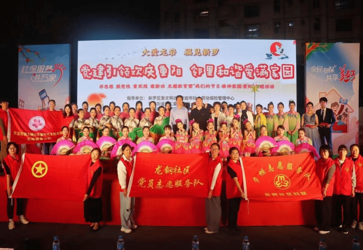 岁岁重阳,不似春光,胜似春光。为弘扬中华民族孝老爱亲传统美德,营造养老孝老敬老良好社会氛围,10月22日晚上,龙钢社区与我校等共建单位在龙钢社区新时代文明实践站前广场联合举办了“党建引领欢庆重阳,邻里和谐爱满家园”为主题的文艺晚会。