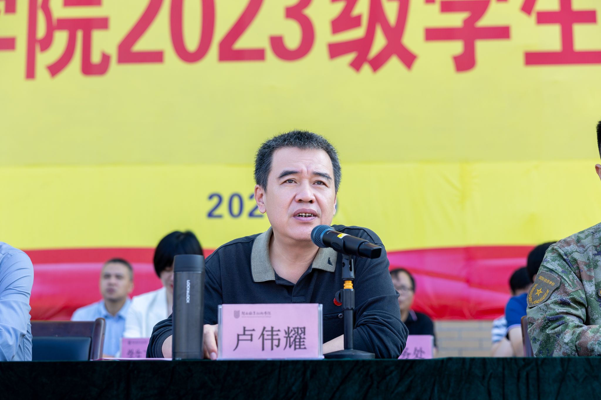 卢伟耀强调,学校就是一座军营,每位同学就是一名军人。军训虽苦,但它能让我们更加珍惜当下的幸福生活;军训虽累,但它能让我们体验到了超出体力的极限快感;军训虽严,但它能让我们更加地严格要求自己。希望同学们传承好红色基因,全面落实“思想建党”“政治建校”要求,像军人一样英姿飒爽,像军人一样纪律严明,像军人一样意志刚强,用出色的表现为大学生活开好头,起好步。