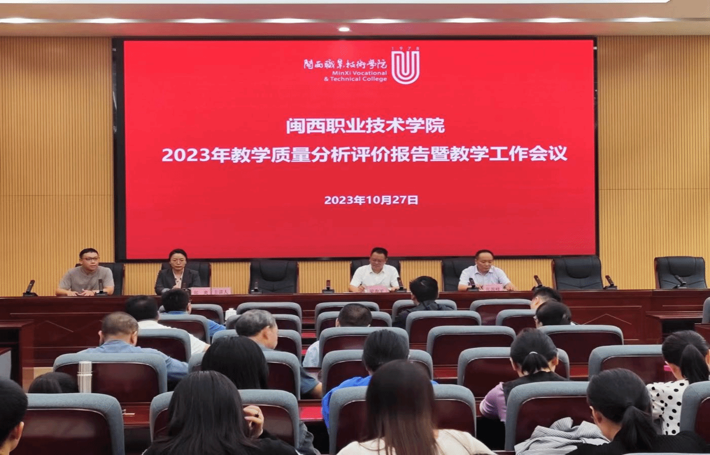 2023年10月27日下午,学校在协成楼二楼会议室召开2023年教学质量分析评价报告暨教学工作会议。校领导梁俊平、张源峰出席,教务处、发展规划与质量控制处、对外交流合作处等职能部门负责人、各教学单位负责人、各二级学院分管教学副院长、校级督导、各教研室主任及教学秘书参加了会议。会议由发展规划与质量控制处负责人主持。