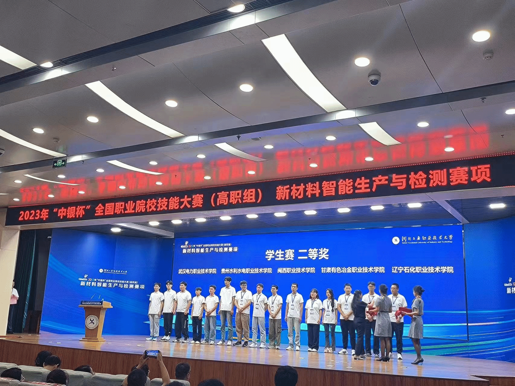 全国职业院校技能大赛(高职组)“新材料智能生产与检测”赛项于9月22日-25日在河北工业职业技术大学举行,我校智能制造学院学生兰晓恒、李永明、范靖奇荣获该赛项二等奖(指导老师教师:梁玉兰、钟彬扬)。