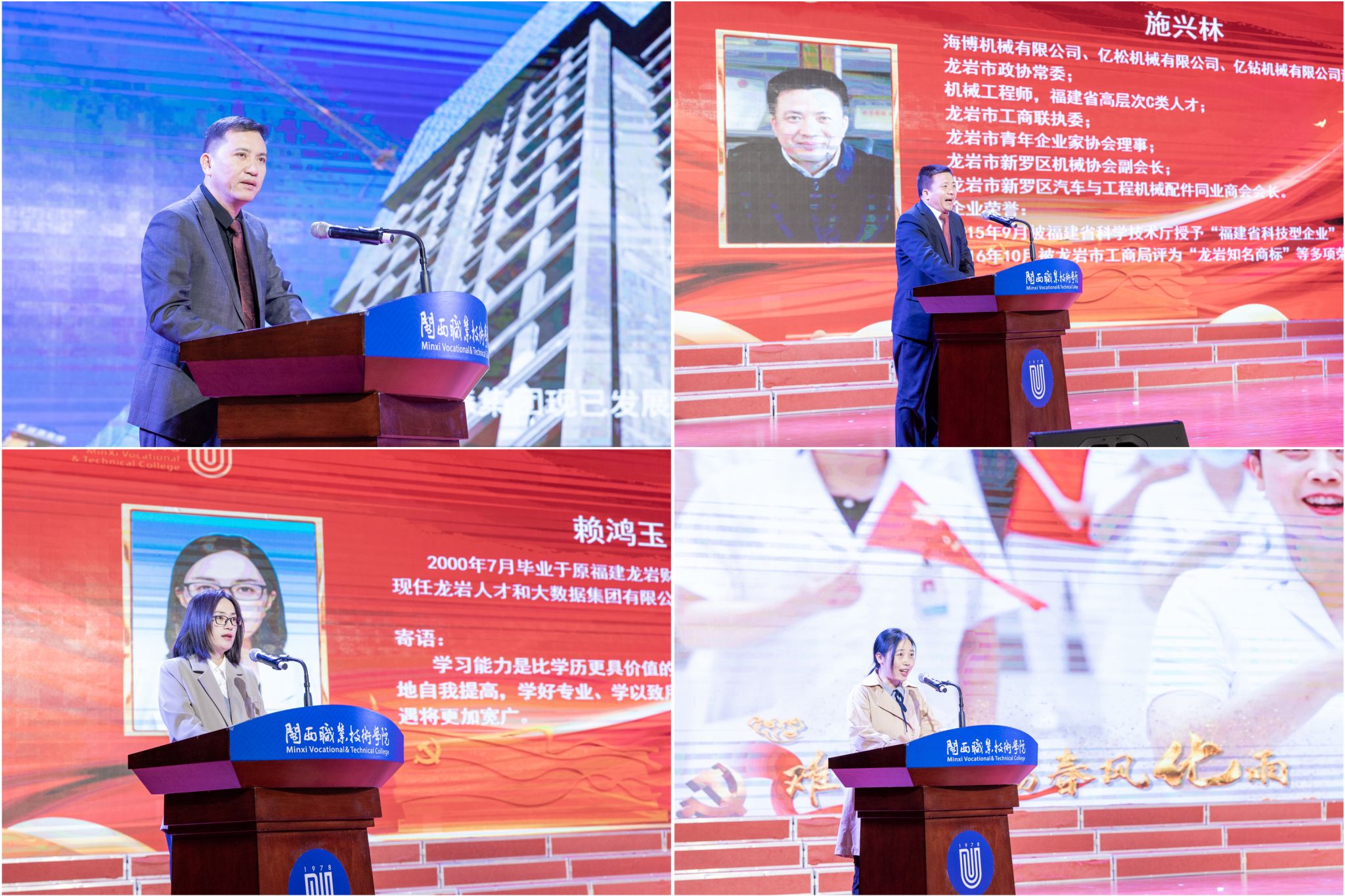 在梁俊平校长的主持下,庆典活动既简朴又不失庄重。校友代表苏振渊、施兴林、赖鸿玉、林三秀依次登台致辞,分享了他们对母校的情感回忆和创业奋斗的故事。他们的致辞不仅是对母校深厚情感的表达,更是一段段励志与奋斗的故事,激励着在座的每一位。