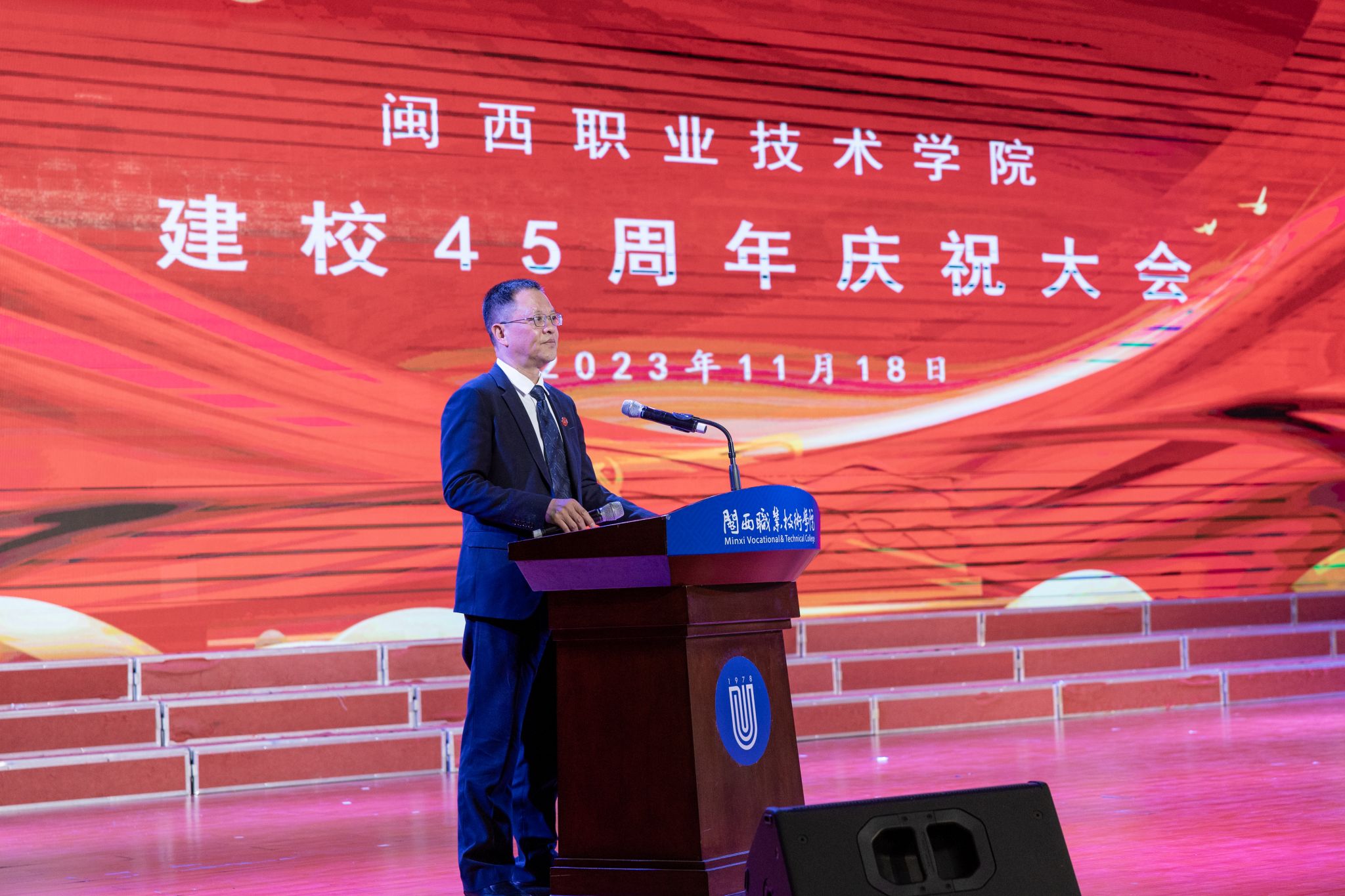 校党委卢伟耀书记发表了充满深情的总结讲话。他回顾了学校45年来艰苦创业、爬坡过坎、蓄势聚能的发展历程;强调了各级党委、政府和老前辈们对学校发展的大力支持和做出的重要贡献;提出了面向未来,全校上下要在在习近平新时代中国特色社会主义思想指导下,推进省“双高”建设,聚焦“予生最好学校”创建等一系列战略任务,团结拼搏、踔厉奋发、共同推进学校各项事业高质量发展。